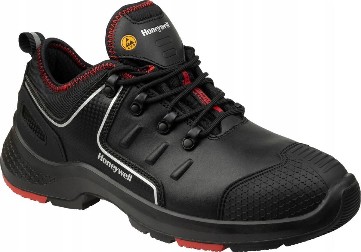 Półbuty bezpieczne Honeywell OTTER GUARD szeroki metalowy podnosek osłona noska z TPU cholewka wykonana ze skóry licowej odporna na przebicie warstwa środkowa ze stali nierdzewnej poliuretanowo-nitrylowa podeszwa gumowe oblanie, zapobiegające ścieraniu się czubka buta podczas tarcia nim o podłoże …