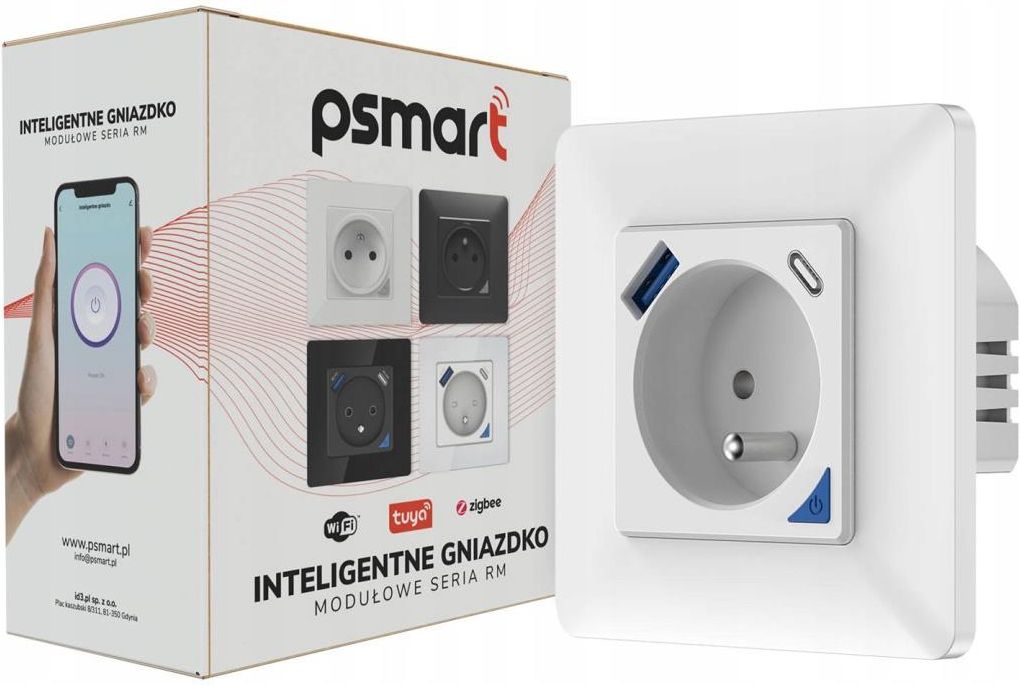 Inteligentne gniazdko WiFi z pomiarem mocy, portem USB oraz USB typu C w kolorze białym - PSMART TUYA Do ładowania telefonu lub innego urządzenia. Nie potrzebujesz już ładowarki, wystarczy sam kabel USB! UWAGA! Oferta obejmuje moduł gniazda bez ramki. Dobierz odpowiednią ramkę pojedynczą lub modułową z oferty PSMART. Zdjęcia produktu są poglądowe, z przykładową ramką pojedynczą. Najważniejsze zalety: Sterowanie pracą urządzeń z jakiegokolwiek miejsca na świecie Gniazdo posiada precyzyjny pomiar prądu. Sprawdzanie aktualnego zużycia: Moc W, Napięcie V, Suma KWh Szybkie ładowanie z protokołem 3.0+/3.0/2.0 i interfejsem USB/type C z obsługą różnych telefonów i urządzeń elektrycznych, z maksymalną mocą wyjściową DC 20 W Historia pomiaru prądu dostępna na wykresie (dzienna, miesięczna i roczna) Urządzenie posiada dziurę na bolec (uziemienie) Do obsługi urządzenie nie jest wymagana dodatkowa bramka. Podłącz urządzenie do swojego domowego routera WiFi i korzystaj z pełni możliwości w dowolnej lokalizacji Gniazdo posiada kontrolę stanu po zaniku zasilania: włączone, wyłączone, przywróć stan sprzed utraty zasilania Sterowanie przyciskiem manualnym Możliwość automatyzacji na podstawie wielu parametrów Możliwość ustawienia harmonogramu i terminarza Darmowa aplikacja Tuya Smart lub Smartlife dla Android oraz iOS Łatwa instalacja i obsługa Sterowanie głosem za pośrednictwem Amazon Alexa lub Google Assistant, tylko dla urządzeń kompatybilnych z tymi systemami Wbudowane 2 porty USB Protokół 3.0+/3.0/2.0 i interfejs USB/typu C z obsługą różnych telefonów i urządzeń elektrycznych, z maksymalną mocą wyjściową DC 20 W Uwaga: Dwa porty ładowania będą działać nieprzerwanie, gdy gniazdo jest wyłączone. Gniazdo modułowe Zaskocz wszystkich z nowymi gniazdkami WiFi, które są i zaawansowane i designerskie. Z pozoru zwykłe gniazdko, a w środku najnowszy moduł WiFi z możliwością programowania zaawansowanych scen i automatyzacji. Gniazdko idealnie pasuje do pomieszczeń z blisko umiejscowionymi (sąsiadującymi, modułowymi) puszkami podtynkowymi. Precyzyjny pomiar zużycia energii! Wskazanie chwilowe Suma dziennego zużycia Suma tygodniowa Miesięczne podsumowanie Wykres zużycia energii Inteligentne gniazdko Inteligentne gniazdko podtynkowe z serii RM pozwala na zdalne sterowanie urządzeniami podpiętymi do danego gniazdka, ustawienie timera, czy monitoring zużycia energii. Współpracuje z asystentami głosowymi Alexa i Google oraz posiada szereg zabezpieczeń. Gniazdko idealnie pasuje do pomieszczeń z blisko umiejscowionymi (sąsiadującymi, modułowymi) puszkami podtynkowymi. Poszukaj w naszej ofercie pozostałych urządzeń z tej serii i łącz je za pomocą dedykowanych ramek, które znajdziesz także w naszej ofercie. *W zależności od dostawy produkt może się nieznacznie różnić od przedstawionych w ofercie zdjęć. Inteligentny timer Gniazdko umożliwia również ustawienie timera za pomocą aplikacji, co oznacza, że możesz decydować o godzinach, w jakich urządzenia w Twoim domu mają być włączone, lub pozostać wyłączone. To świetny sposób na oszczędność prądu, ponieważ dzięki tej funkcji możesz uniknąć niepotrzebnym poborom energii. Bezpieczne użytkowanie Gniazdko posiada szereg zabezpieczeń przeciwko przepięciom i przetężeniom prądu, a także przeciwko przegrzaniu, dzięki czemu nie musisz się martwić o urządzenia podłączone do gniazdka. Zdalne sterowanie Jeśli zapomniałeś wyłączyć światło wychodząc z domu, lub wręcz przeciwnie, chciałbyś zostawić je zaświecone dla swojego pupila lub odstraszyć potencjalnych złodziei, możesz zrobić to zdalnie za pomocą aplikacji. To nieoceniona wygoda i komfort, którą doceni każdy użytkownik. Specyfikacja: Wymiary bez ramki: 50 x 50 x 42,2 mm Wymiary gniazdka w ramce: 80 x 80 mm Zasilanie: AC 100 V-240 V (50/60 Hz) Maksymalna moc ciągła: 3000 W Maksymalna moc szczytowa: 3600 W Moc ładowania USB: do 20 W USB-A: DC 5 V/3 A, 9 V/2 A, 12 V/1.5 A TYP-C: DC 5 V/3 A, 9 V/2.22 A, 12 V/1.67 A USB-A + TYP-C: DC 5 V/3.4 A maks. Łączność WiFi: 2.4 GHz Zestaw zawiera: Inteligentne gniazdko białe seria RM Śrubki do montażu Instrukcja Kod produktu: T400U *W zależności od dostawy produkt może się nieznacznie różnić od przedstawionych w ofercie zdjęć. W ofercie także modele 1, 2, 3 i 4 kanałowe moduły oświetlenia z serii RM białe i czarne, oraz dedykowane ramki 1, 2, 3 i 4 modułowe! Uzyskaj dowolną kombinację w poziomie lub pionie. Modułowa konstrukcja pozwala na konfigurowanie przełączników w ramkach 1, 2, 3, 4 modułowych.