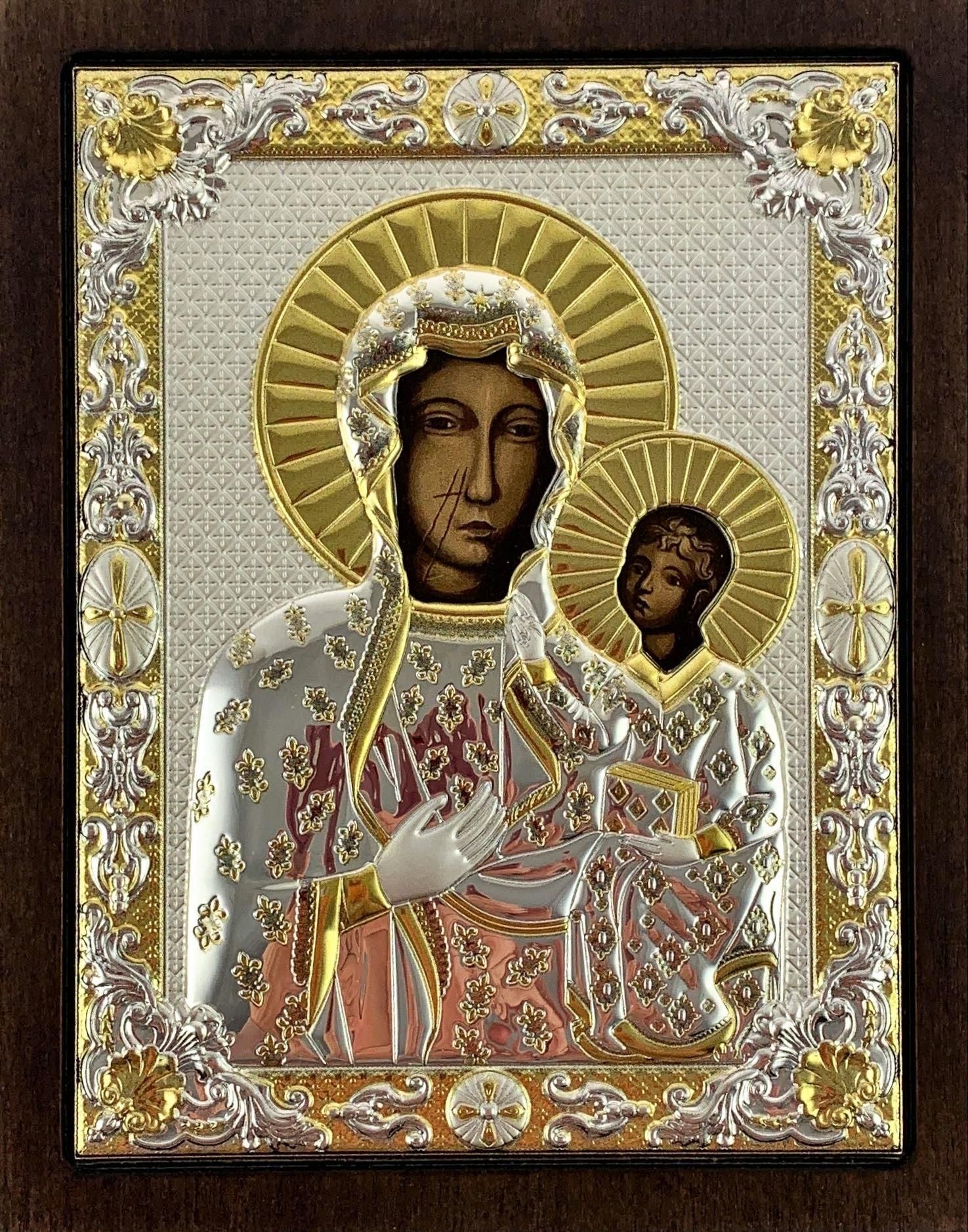 Replika ikony jasnogórskiej - ikona (grecka) srebrna częściowo pozłacana. Ikona posiada stosowny certyfikat.