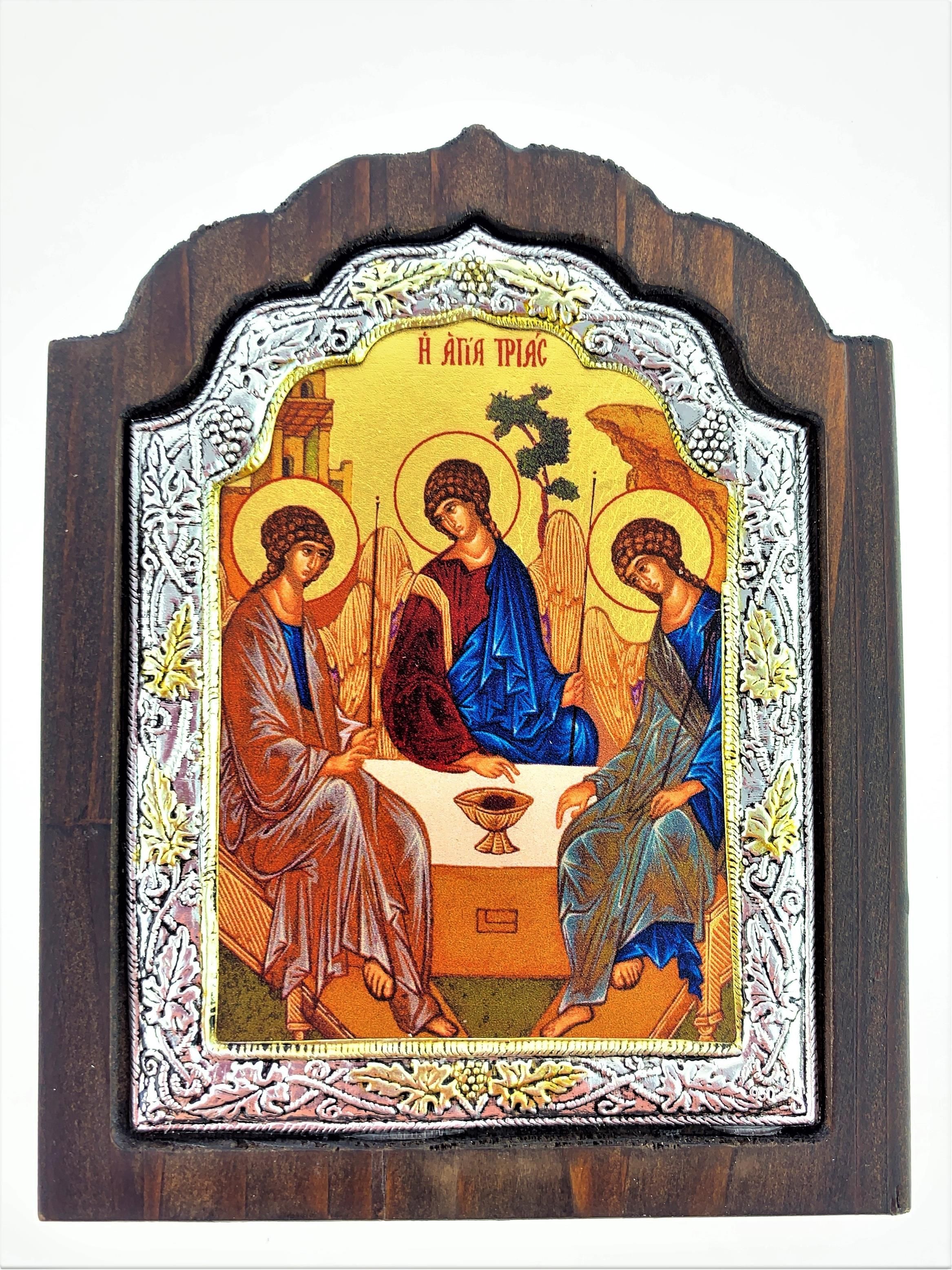 Ikona grecka na desce, w etui Rękodzieło prosto z Grecji. Metalowa ramka została posrebrzona srebrem próby 925. Wspaniała pomysł na prezent urodzinowy lub pamiątkę I Komunii św. Ikona posiada stosowny certyfikat. Wymiary ikony: 10 x 11,5 cm