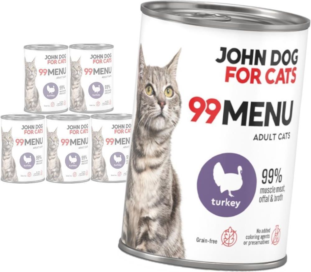 Oferta wystawiona przez właściciela marki. John Dog for Cats Karma mokra 99 MENU dla kota indyk 6x400 g Zalety karmy 99% mięsa mięśniowego, podrobów i rosołu mięso i podroby bez dodatku warzyw, czy owoców, czyli propozycja o znikomej zawartości węglowodanów o odpowiednio niskiej zawartości fosforu …