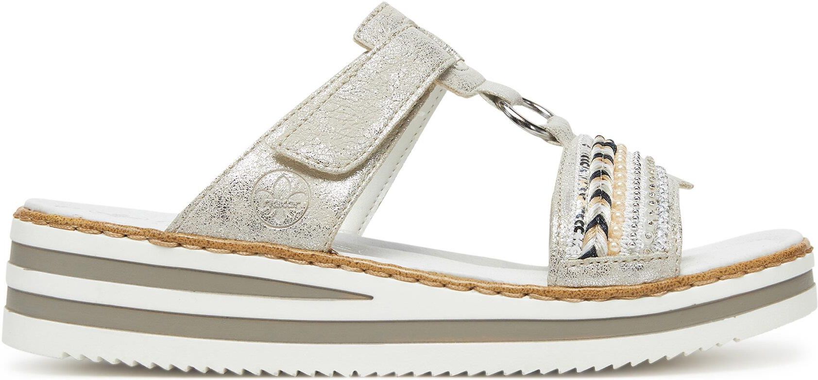 Odkryj nową jakość komfortu z klapkami marki Rieker! Te damskie buty, wyposażone w koturny, zapewniają nie tylko elegancki wygląd, ale również komfortowe wsparcie dla Twoich stóp. Dodatkowym atutem jest ozdobienie koralikami, które nadaje butom niepowtarzalnego charakteru i sprawia, że wyróżnisz się w tłumie. Zastosowanie technologii Rieker Antistress gwarantuje, że Twoje stopy będą odpoczywać z każdym krokiem, dzięki czemu te klapki są idealne na długie, letnie dni. Wybierz jakość i styl z Rieker! Od ponad stu lat marka Rieker oferuje niezwykle komfortowe i trwałe obuwie, które powstaje z myślą o zdrowiu stóp. Dzięki wieloletniemu doświadczeniu w produkcji obuwia, ta niemiecka marka doskonale potrafi łączyć wygodę ze stylem, dlatego w ofercie znajdziesz buty w modnych, oryginalnych fasonach, które każdemu przypadną do gustu. Buty Rieker tworzone są z materiałów wysokiej jakości, przez co odznaczają się wyjątkową elastycznością i trwałością, ale też lekkością. Ponadto w obuwiu stosuje się szerszą formę zapewniającą odpowiednią stabilizację stopy, specjalne podeszwy absorbujące wstrząsy oraz odciążające stawy i kręgosłup, a także wyjmowane wkładki z pianki Memory Foam, która idealnie dopasowuje się do kształtu stóp. To doskonałe produkty dla tych, którzy ponad wszystko cenią sobie komfort. Przekonaj się!