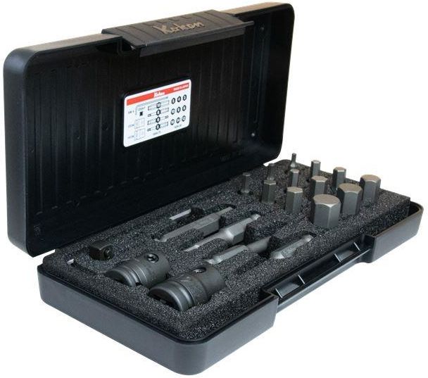 zestaw profesjonalnych bitów imbusowych firmy KOKEN [499785]: narzędzia profesjonalne przeznaczone są do zastosowań w przemyśle, zestaw bitów imbusowych HEX z napędem 7/16" dostarczany w praktycznej walizce z tworzywa, zestaw składa się 16 końcówek, 2 adapterów i jednej przejściówki, końcówki i adaptery wykonane zostały zgodnie z normami DIN 3126 E 11.2 / ISO 1173 E 11.2. dedykowane są do współpracy z adapterem 14134 na kwadrat 1/2“ lub 13134 na kwadrat 3/8“, przejściówka/redukcja udarowa 12233A-P z kwadratu 1/4“ na kwadrat 3/8“ pozwala na pracę wkrętarką z końcówką na kwadrat 1/4", klucz trzpieniowy w rozmiarze 4mm służy do zabezpieczania końcówek w adapterze przed wypadaniem podczas pracy, Zestaw firmy Koken [499785] składa się z: 1 x końcówka HEX o długości 35mm z napędem 7/16", rozmiar 3 mm [183H-35 3], 1 x końcówka HEX o długości 35mm z napędem 7/16", rozmiar 4 mm [183H-35 4], 1 x końcówka HEX o długości 35mm z napędem 7/16", rozmiar 5 mm [183H-35 5], 2 x końcówka HEX o długości 35mm z napędem 7/16", rozmiar 6 mm [183H-35 6], 2 x końcówka HEX o długości 35mm z napędem 7/16", rozmiar 8 mm [183H-35 8], 2 x końcówka HEX o długości 35mm z napędem 7/16", rozmiar 10 mm [183H-35 10], 1 x końcówka HEX o długości 35mm z napędem 7/16", rozmiar 12 mm [183H-35 12], 1 x końcówka HEX o długości 35mm z napędem 7/16", rozmiar 14 mm [183H-35 14], 1 x końcówka HEX o długości 35mm z napędem 7/16", rozmiar 16 mm [183H-35 16], 1 x końcówka HEX o długości 75mm z napędem 7/16", rozmiar 5 mm [183H-75 5], 1 x końcówka HEX o długości 75mm z napędem 7/16", rozmiar 6 mm [183H-75 6], 1 x końcówka HEX o długości 75mm z napędem 7/16", rozmiar 8 mm [183H-75 8], 1 x końcówka HEX o długości 75mm z napędem 7/16", rozmiar 10 mm [183H-75 10], 1 x adapter do końcówek 7/16" z gniazdem na kwadrat 1/2" [14134], 1 x adapter do końcówek 7/16" z gniazdem na kwadrat 3/8“ [13134], 1 x przejściówka: wewnętrzny kwadrat 1/4" na zewnętrzny kwadrat 3/8" [12233A-P], 1 x klucz trzpieniowy w rozmiarze 4 mm, parametry techniczne zestawu firmy KOKEN [499785]: liczba elementów zestawu: 20 szt, opakowanie: kaseta z tworzywa, waga: 900 g. Dostępne są również w ofercie pojedynczo inne końcówki HEX, TORX, TORXplus, XZN o różnych długościach (35mm, 75mm, 150mm) zapytaj sprzedawcy o dostępność sklep@phuabc.com.pl, zobacz inne narzędzia marki KOKEN