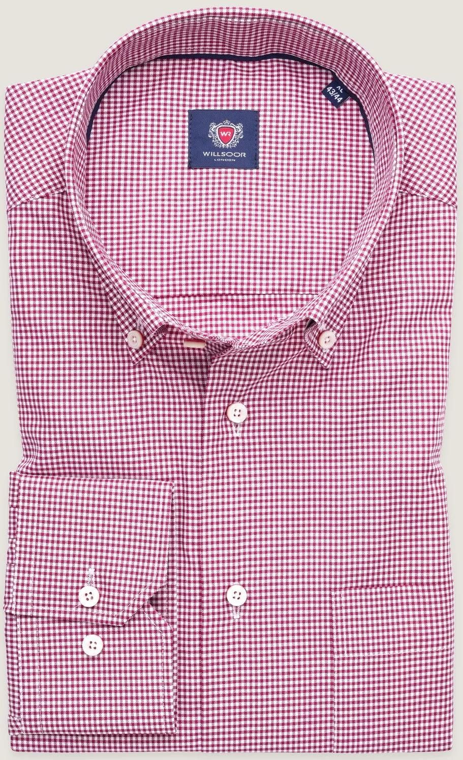 Klasyczna koszula w drobną, czerwoną i białą kratkę z podpinanym kołnierzykiem i kontrastowymi guzikami, 100% bawełna