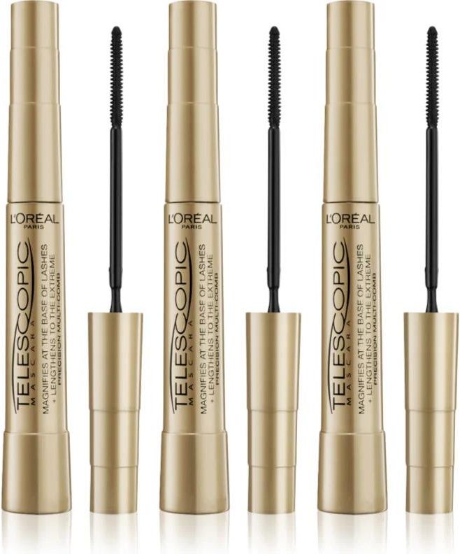 L’Oréal Paris Telescopic, 3x8 ml, Tusze dla kobiet, Chcesz podkreślić swoje oczy i wydobyć ich naturalne piękno? Pomoże Ci w tym tusz do rzęs L’Oréal Paris Telescopic . Pokryje Twoje rzęsy na całej ich długości ciągłą warstwą intensywnego, nasyconego koloru, optycznie je wydłużając i nadając im dodatkową objętość. W mgnieniu oka rzęsy staną się grubsze i pełniejsze, a spojrzenie nabierze głębi i dramatyzmu. Właściwości: ma intensywny kolor oddziela poszczególne rzęsy wydłuża rzęsy nie skleja rzęs Sposób użycia: Nanoś tusz delikatnymi pociągnięciami na rzęsy od nasady aż do końcówek. Dla lepszego efektu nałóż więcej warstw.