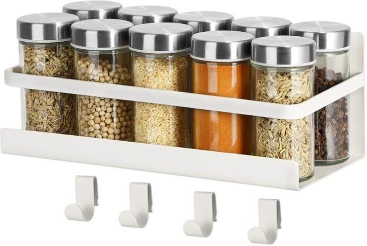 Magnetyczna półka na lodówkę Organizer na przyprawy 4 haczyki biała Andrychów