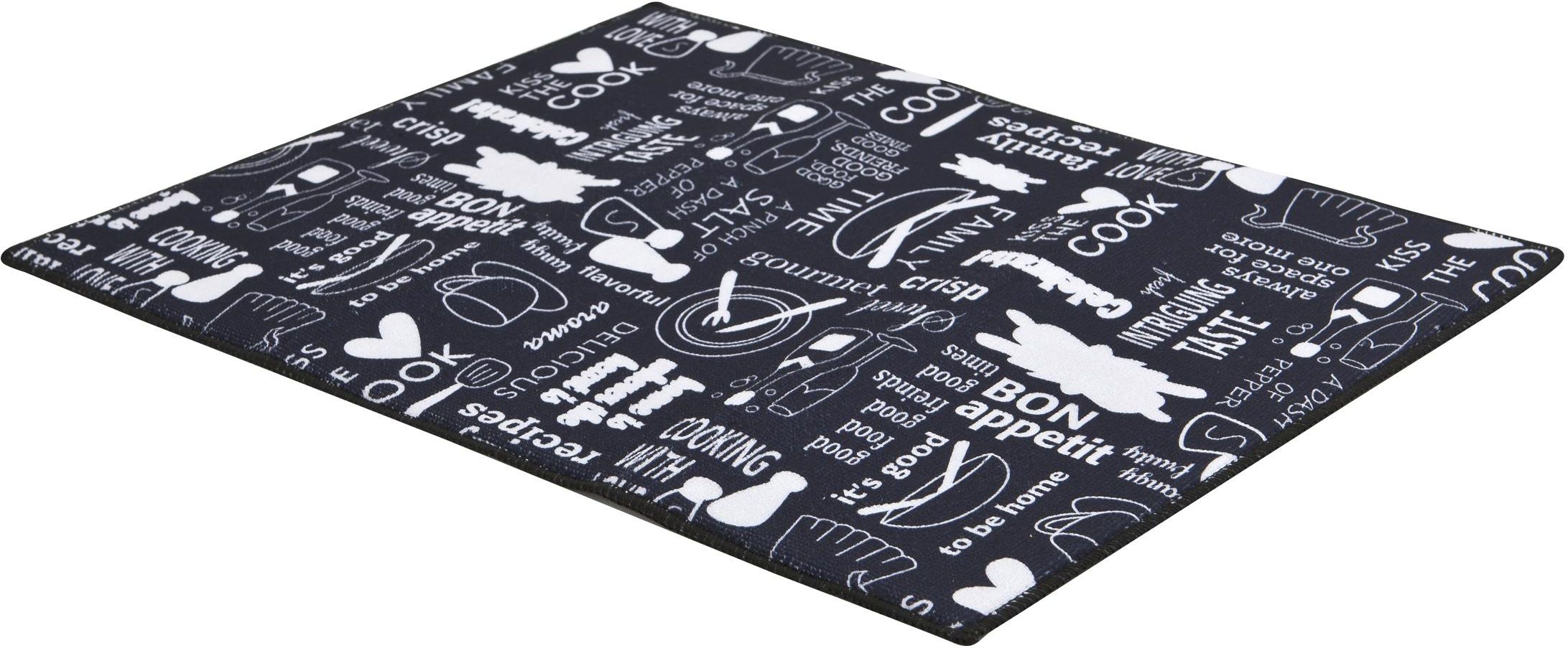 Praktyczna i użyteczna mata do ociekania naczyń marki Tadar z ciekawą stylistyką. Wykonana w 100% z poliestru szybko wysycha. Charakteryzuje ją ogrom napisów w języku angielskim, które przeplatają się pionowo i poziomo z różnego rodzaju obrazkami. Mata jest w kolorze ciemnym granatowym, a zdobienia są białe. Mata do suszenia naczyń jest wygodna alternatywą dla tradycyjnych ociekaczy, gdyż zajmuje dużo mniej miejsca. Jest łatwiejsza w pielęgnacji i znacznie ładniej się prezentuje. Wymiary: 50x38x0,6 cm Przedmiotem sprzedaży jest mata do suszenia naczyń. Filiżanki i kubki widoczne na zdjęciu służą celom dekoracji.