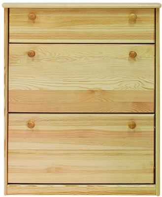 Szafka na buty model II+I C82. Wykonana w całości z drewna sosnowego. Prosta stabilna konstrukcja. Podział na szuflade + dwie półki. Szafka jest lakierowana, w opcji koloru jest bejcowana na kolor następnie lakierowana lakierem bezbarwnym metodą natryskową. Wymiary szafki : szerokość 73cm głębokość 28 cm wysokość 100 cm gr.materiału 2 cm