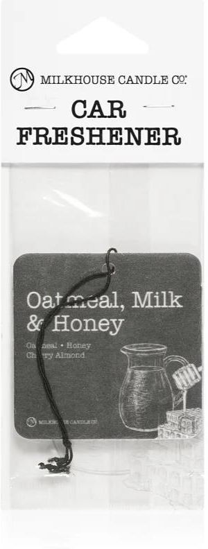 Milkhouse Candle Co. Creamery Oatmeal, Milk & Honey, 1 szt., Zapachy do samochodu Zapachy do domu, Zawieszka zapachowa do samochodu Milkhouse Candle Co. Creamery Oatmeal, Milk & Honey to idealny dodatek do wypełnienia przyjemnym zapachem wnętrza samochodu lub niewielkich pomieszczeń. Dzięki praktycznej pętelce zawiesisz ją w pożądanym miejscu i podczas całej jazdy będziesz się cieszyć jej przyjemnym aromatem. Właściwości: słodki aromat wykwintny zapach