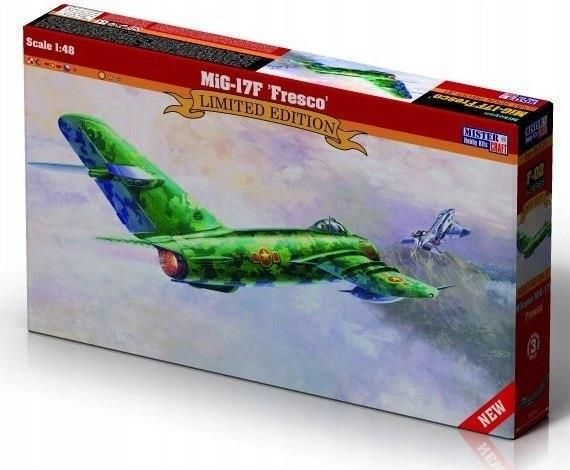 Mig-17F Fresco – rosyjski samolot bojowy z lat 50. Został wykonany z wysokiej jakości materiałów, z dbałością o szczegóły. Możliwe są 4 wersje malowania.Zawartość opakowania:• plastikowy model, • instrukcja montażu, • naklejki,• klej,• pudełko.Specyfikacja:• skala: 1:48,• poziom trudności: 4,• ilość elementów: 120,• malowania: Polska, Niemcy, Czeska Republika, Rosja,• długość: 22.8 cm,• szerokość: 19.8 cm. Wymiary opakowania: 36.5 x 21.5 x 5.0 cm EAN: 5903852060022