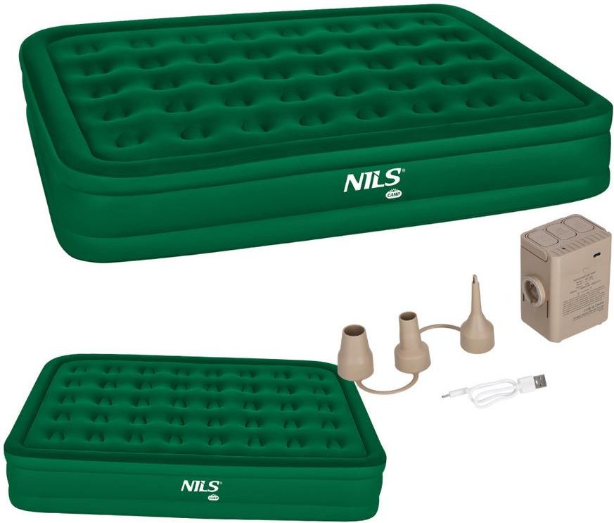 Nils Camp Materac Kempingowy Do Spania 2 Os Z Wbudowaną Pompką Elektryczną 200 × 145 35Cm Zielony Andrychów