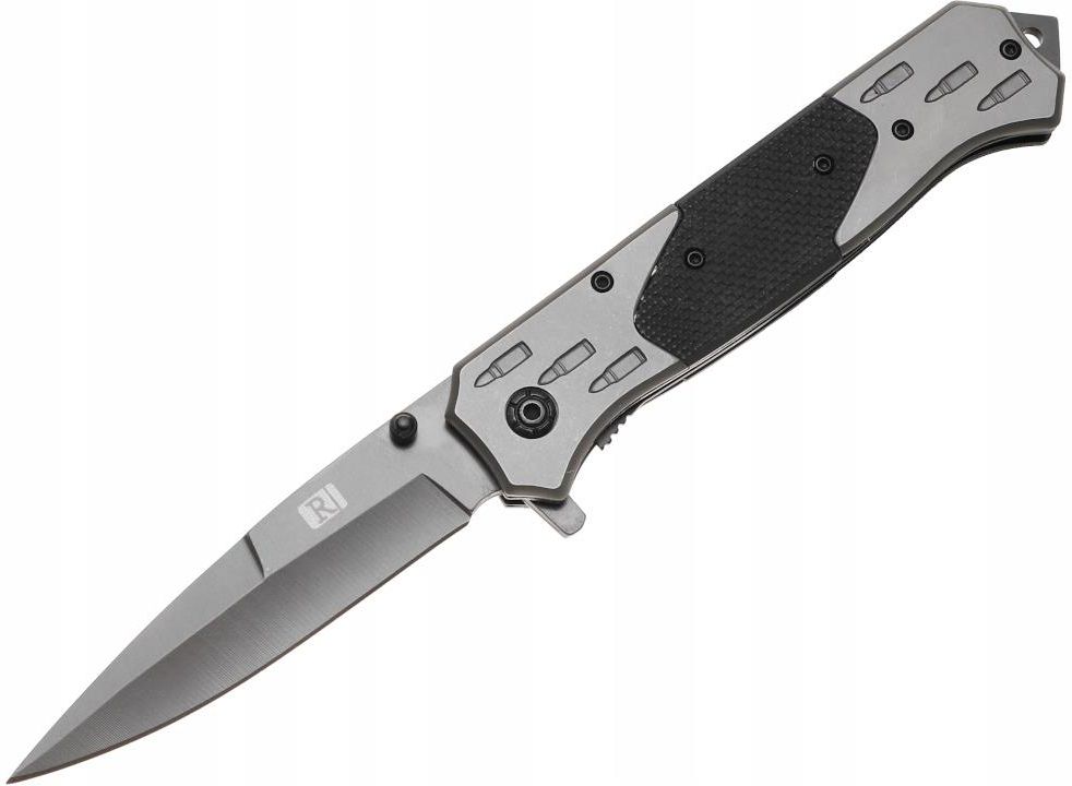 Nóż składany Głownia typu Spear point posiada utwardzony sztych, dzięki czemu idealnie nadaje się do pchnięć Cechy produktu: Nóż wykonany z wysokiej jakości stali Ozdobny uchwyt z kilku elementów Klips umożliwia zapięcie na pasek Rękojeść typu Frame lock Bardzo ostry Wygodnie leży w dłoni W dolnej części rękojeści otwór na linkę Scyzoryk składany Bardzo solidne wykonanie Długość ostrza: 9 cm Długość noża: 23 cm Długość noża złożonego: 13,5 cm