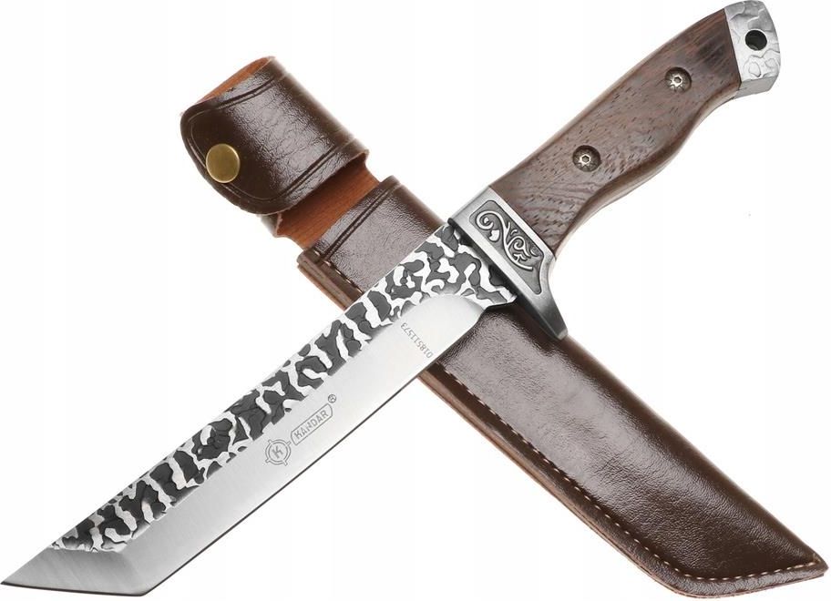 Nóż tanto + kabura Potężny, ostry sztych może powodować poważne rany, przez co tanto najczęściej spotyka się w nożach o przeznaczeniu bojowym Cechy produktu: Nóż wykonany z wysokiej jakości stali Bardzo ostry Wygodnie leży w dłoni Głownia typu tanto Konstrukcja z pełnym trzpieniem Rękojeść z drewnianych nakładek, mocowana na 2 skręcane piny Jelec zapobiega osunięciu się ręki podczas użytkowania Na dole rękojeści stalowa głowica z otworem na linkę Bardzo solidne wykonanie Długość ostrza: 16 cm Długość noża: 30 cm W zestawie pokrowiec z możliwością zawieszenia na pasek