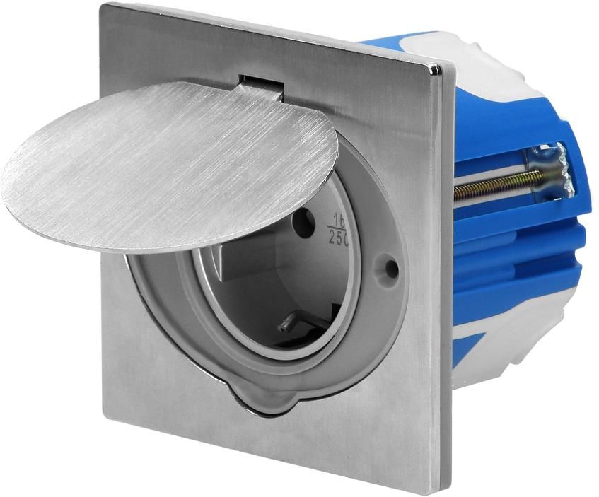 Orno Hermetyczne Gniazdo Elektryczne Schuko Ip44 Stal Nierdzewna Z Wiatroszczelną Puszką Montażową (ORAE1397GSMB) Andrychów
