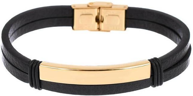 BRANSOLETKA PACIFIC LB-020-G męska bransoletka w kolorze czarnym, ze złotym akcentem Idealne połączenie klasy i stylu! Zapięcie na magnes. Materiał: Skórzana. Kolorystyka: Kolor czarno-złoty. Wymiary: Szerokość 24 mm, . Obwód wewnętrzny: max 23 cm