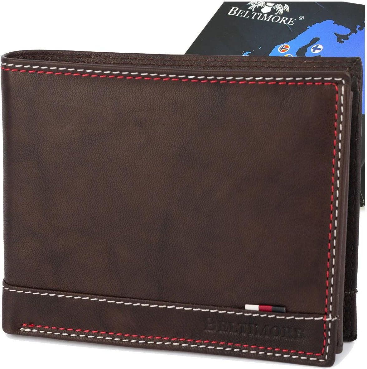 Portfel wykonany jest z naturalnej skóry, renomowanej marki Beltimore - w tej ofercie dostępna jest limitowana edycja portfela w brązowym kolorze. Model D28brown Poziomy portfel bez zapinki, który bez problemu pomieści dowód rejestracyjny pojazdu. Starannie wykonany z najwyższej jakości skóry naturalnej koziej– trwałej, przyjemnej w dotyku i eleganckiej. Nowoczesny akcent – na froncie ma modną flagę, dodającą mu charakteru. Stylowe detale – ozdobne obszycie nicią w biało-czerwonych barwach doskonale komponuje się z modną flagą na froncie, tworząc spójną i nowoczesną całość. Idealny na prezent – do każdego egzemplarza dołączamy stylowe, firmowe pudełko o solidnym wykończeniu.