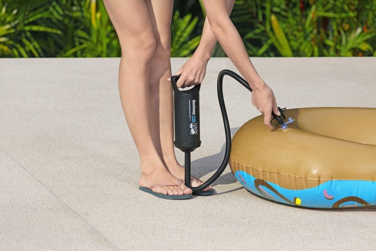 Pompka Bestway AIR Hammer 12" 30cm 7796 62002 Pompka Bestway sprawdzi się w czasie pompowania materacy i zabawek wodnych. Kompaktowe wymiary pozwalają na wygodne przenoszenie. Pompka jest wydrożna - pompuje podczas ruchu w górę i w dół. Elastyczny wąż jest odporny na uszkodzenia. Końcówki pasują do większości zaworów. · wydajność: 2 x 700cm3 · wariant kolorystyczny wysyłany losowo