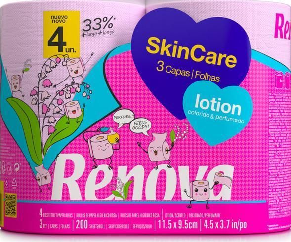 Papier toaletowy Renova Skin Care Lotion 4 jasnoróżowe rolki Nowy wymiar komfortu, na jaki zasługuje Twoja skóra. Skin Care Lotion Rose zachwyci Twoje zmysły. Posiada atrakcyjny jasnoróżowy kolor, jest bardzo miękki, ponieważ posiada 3-warstwy delikatnego papieru pierwszej jakości, jest perfumowany …