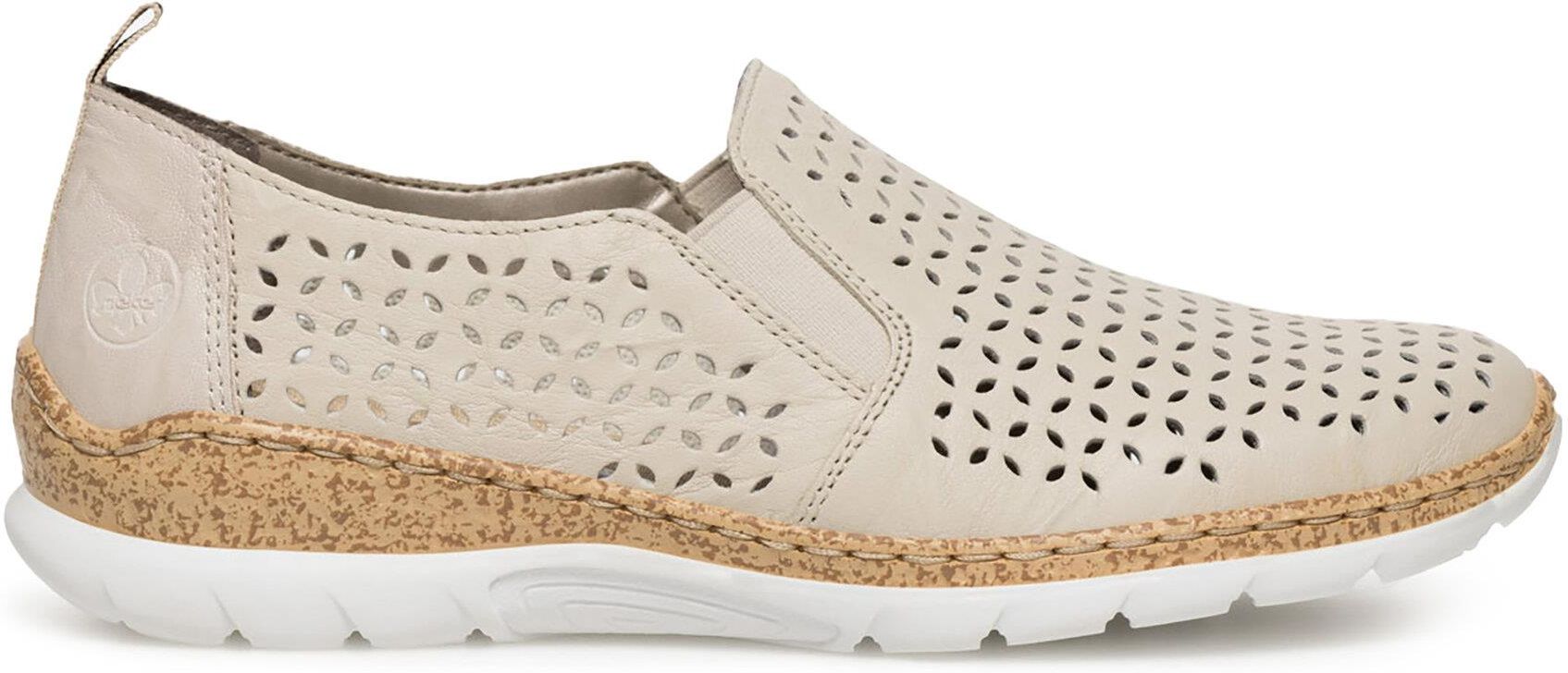 Rieker N4251 60 Beżowy Półbuty damskie Rieker N4251 60 Beżowy to kluczowy element garderoby, który łączy styl i wygodę. Idealnie nadają się na wiele okazji, od codziennego użytkowania po bardziej formalne wyjścia. Odpowiednio dobrane półbuty potrafią podkreślić indywidualny styl i dodać pewności siebie. Model ten to doskonały przykład harmonijnego połączenia tych cech. Typ i materiał wykonania Model Rieker N4251 60 Beżowy wyróżnia się prostotą oraz elegancją, co czyni go odpowiednim rozwiązaniem zarówno do casualowych, jak i bardziej formalnych stylizacji. Wykonany z wysokiej jakości skóry licowej oraz skóry naturalnej, zapewnia trwałość i estetyczny wygląd. Beżowy kolor doskonale komponuje się z wieloma elementami garderoby, wprowadzając ciepły akcent do każdej stylizacji. Wsuwany fason ułatwia zakładanie i zdejmowanie, co jest niezwykle praktyczne w codziennym użytkowaniu. Konstrukcja i podeszwa Półbuty Rieker N4251 60 Beżowy zapewniają wygodę i komfort na co dzień. Ich płaska podeszwa gwarantuje stabilność, a antypoślizgowe wykończenie umożliwia bezpieczne poruszanie się nawet po śliskich nawierzchniach. Lekkość materiałów sprawia, że model ten doskonale dopasowuje się do stopy, co jest kluczowe dla komfortu noszenia. Rodzaj zapięcia Model Rieker N4251 60 Beżowy to wsuwane półbuty, co oznacza brak konieczności zawiązywania sznurowadeł. Taki typ zapięcia jest idealnym rozwiązaniem dla osób ceniących wygodę i oszczędność czasu. Dzięki temu, użytkowanie tych półbutów staje się jeszcze bardziej praktyczne i komfortowe. Wkładka wewnętrzna Wnętrze półbutów Rieker N4251 60 Beżowy zostało starannie zaprojektowane, aby zapewnić maksymalny komfort. Skórzana wkładka zapewnia odpowiednią wentylację oraz komfort, co jest kluczowe dla zdrowia stóp, szczególnie dla osób spędzających wiele godzin na nogach. Kluczowe cechy produktu Półbuty Rieker N4251 60 Beżowy wyróżniają się istotnymi cechami, które warto poznać: materiał: skóra licowa i naturalna, kolor: beżowy, rodzaj zapięcia: wsuwane, podeszwa: płaska, antypoślizgowa, wkładka: skórzana, oddychający materiał: tak, łatwość czyszczenia: tak. Funkcje dodatkowe Dodatkowe funkcje półbutów Rieker N4251 60 Beżowy podnoszą komfort ich użytkowania. Oddychający materiał zapewnia wygodę w cieplejsze dni, a łatwość czyszczenia skórzanych elementów sprawia, że utrzymanie ich w dobrej kondycji jest szybkie i proste. Antybakteryjna wyściółka to kolejny atut, który gwarantuje świeżość przez cały dzień. Dodatki i wykończenia Półbuty Rieker N4251 60 Beżowy to minimalistyczny model, pozbawiony zbędnych ozdób, co czyni go uniwersalnym elementem garderoby. Dzięki swojej prostocie, idealnie wpasuje się w różnorodne stylizacje, pasując zarówno do spodni, jak i sukienek. Wybór półbutów Rieker N4251 60 Beżowy to decyzja, która łączy komfort, styl i funkcjonalność, co czyni je doskonałym uzupełnieniem codziennych stylizacji.