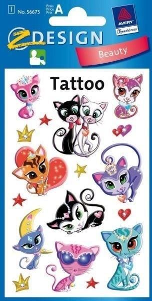 Dzieciaki uwielbiają zabawę kolorami. Takie spędzanie czasu wyzwala kreatywność i daje nieograniczone możliwości. Nic więc dziwnego w tym, że dużą popularnością wśród najmłodszych cieszą się tatuaże. Ozdabianie własnego ciała to wielka frajda, a jednocześnie możliwość przeistoczenia się w morskiego pirata, chińskiego wojownika lub magiczną księżniczkę... Na przeciw tym oczekiwaniom wyszła nowa seria tatuaży firmy AVERY z serii Z-Design. Każdy komplet to nawet 20 różnokolorowych, a także połyskujących w ciemności tatuaży! Dodatkowym atutem jest także łatwość nanoszenia ozdoby na ciało (wystarczy jedynie woda!) oraz możliwość szybkiego zmycia tatuażu za pomocą odrobiny oleju spożywczego. Tatuaże AVERY są całkowicie bezpieczne dla dziecka, nie ścierają się szybko i są wodoodporne. Sprawiają wrażenie profesjonalnie wykonanego tatuażu, który dodatkowo połyskuje w ciemności! Komplet Tatuaże - Kotki zawiera 9 wzorów, przedstawiających czarujące zwierzaki ozdobione mnóstwem dodatków. Zawartość: - blister, zawierający 9 tatuaży z motywem kotów. Wymiary blistra: 7,6cm X 12cm