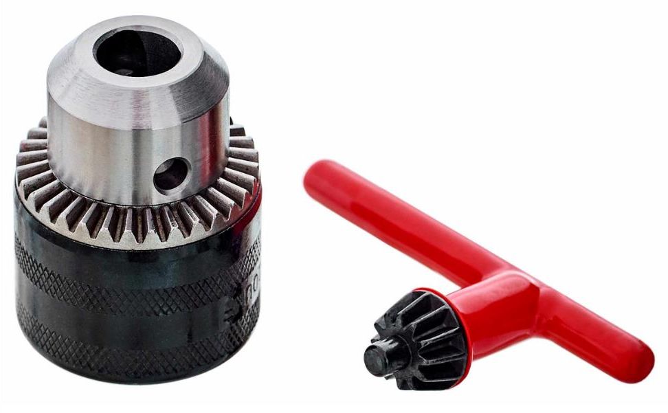 uchywt z kluczem dla wierteł o rozmiarach 2-13 mm, z połączeniem 1/2" precyzyjnie wykonanie zwężanego giwntownia w środku sprawia żę narzędzia są umiejscowione bardzo mocno oraz precyzyjnie pokrycie chromem zabezpiecza przed rdzewieniem zastosowane łożysk