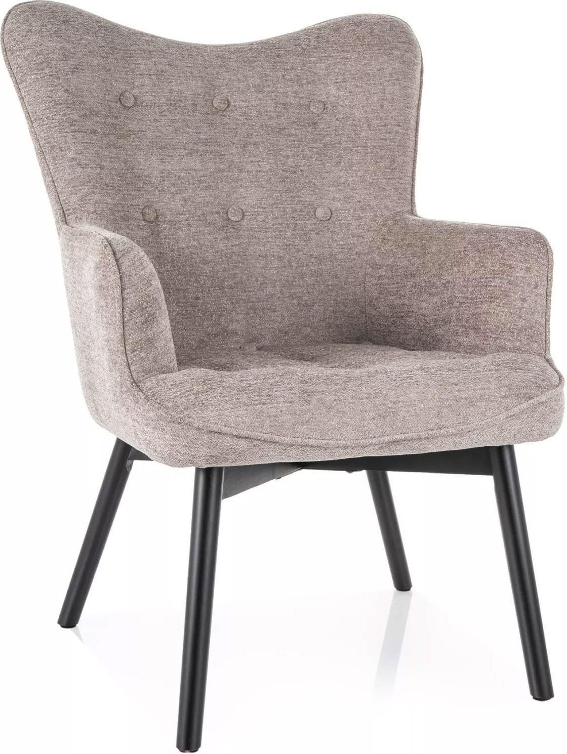 Signal Meble - Elegancja, Funkcjonalność, Unikalny Styl FOTEL CARMEN RAVEN CZARNY MAT STELAŻ / CIEMNY BEŻ 30 SIGNAL Fotel, tkanina Raven 30, stelaż: drewno, kolor: ciemny beżowy / czarny mat. Wymiary fotela: A - 99, B - 72, C - 46, D - 52, E - 75, F - 35 cm