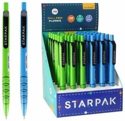 Długopis automatyczny Flowers z kolekcji STARPAK z tuszem w niebieskim kolorze. Opakowanie-display zawiera 36 szt. długopisów automatycznych.