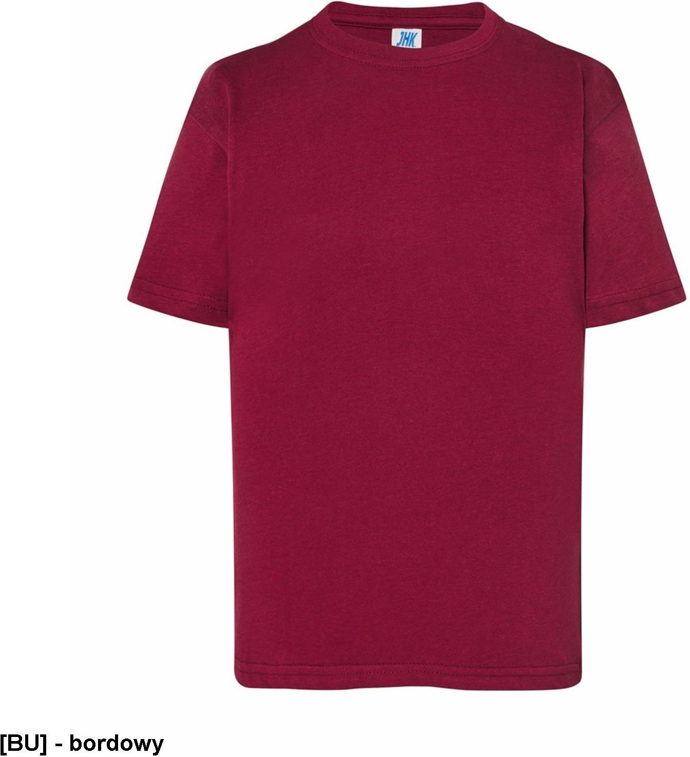 T-shirt JHK TSRK 150 - dziecięca/młodzieżowa z krótkim rękawem wzmocniony lycrą ściągacz, 100% bawełna, 155g - bordowy. 12-14 Andrychów