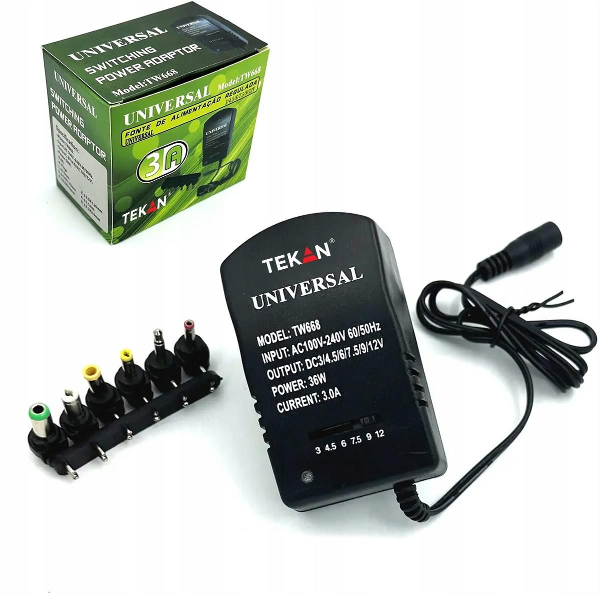 Tekan Zasilacz Sieciowy Uniwersalny Impulsowy Regulowany 3-12V Dc 36W 3A 6 Wtyków Andrychów