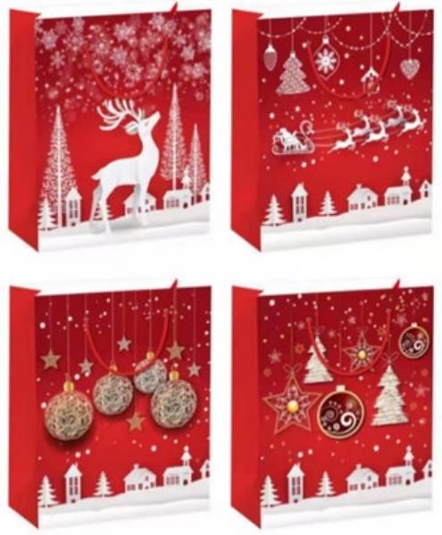 Torebka świąteczna w kolorze głębokiej czerwieni o wymiarach 18x23x10 cm.Uwaga! Różne wzory, towar wysyłany losowo. EAN: 5904703233046