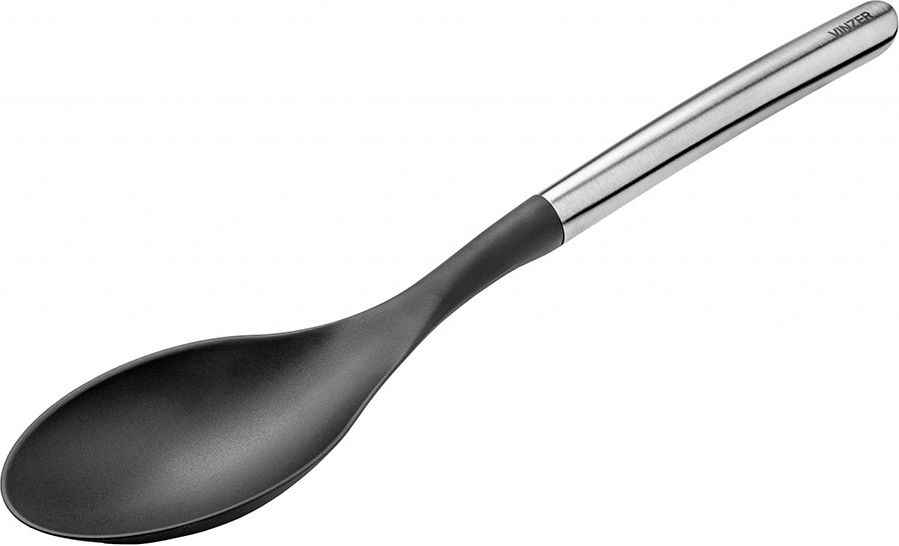 Duża uniwersalna łyżka do przygotowywania różnorodnych potraw to niezbędny dodatek w każdej kuchni. Uchwyt łyżki wykonany jest z wysokiej jakości stali spożywczej FERRINOX 18/10, która nie odkształca się z upływem czasu, jest odporny na działanie kwasów i zasad. Materiał jest przyjazny dla środowiska i nie zawiera sztucznych składników. Łyżeczka nie pochłania zapachów, jest łatwa w czyszczeniu i odporna na wysokie temperatury. Można myć w zmywarce. Wymiary: 33,5 cm x 7 cm x 4,5 cm Materiał: FERRINOX 18/10 stal nierdzewna, nylon