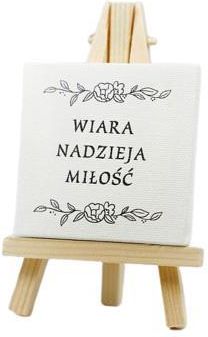 Minipłótno malarskie z nadrukiem: Wiara Nadzieja Miłość Wymiary całości: ok. 12,5 x 8 cm Wymiary płótna: 7 x 7 cm