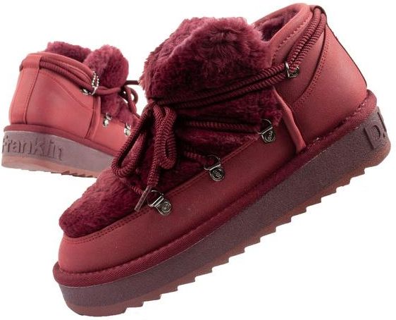 D.Franklin buty śniegowce damskie zimowe modne futerko ocieplane bordowe Buty zimowe dla kobiet. Damskie stylowe buty inspirowane fenomenem après-ski marki D.Franklin. Cholewka wykonana z najwyższej jakości materiałow tekstylnych, którą warto przed użyciem zaimpregnować, aby buty posiadały dodatkową ochronę przed wilgocią. Wykonane z materiałów wegańskich zatwierdzonych przez PETA , podszewka wykonana w 30% z materiałów pochodzących z recyklingu (Global Recycled Standard). Buty ocieplane futerkiem, gwarantują ciepło nawet w bardzo niskich temperaturach. Wykorzystany w obuwiu system sznurowania zapewnia idealne dopasowanie do stopy. Gruba, w pełni amortyzowana podeszwa zewnętrzna chroniąca przed mrozem. Idealne obuwie do każdej modnej stylizacji. Wygodne śniegowce marki D.Franklin. Buty D.Franklin Nordic to idealne połączenie modnego designu i funkcjonalności. Inspirowane stylem outdoorowym, zapewniają komfort w codziennym użytkowaniu oraz świetnie sprawdzają się w jesienno-zimowych warunkach.