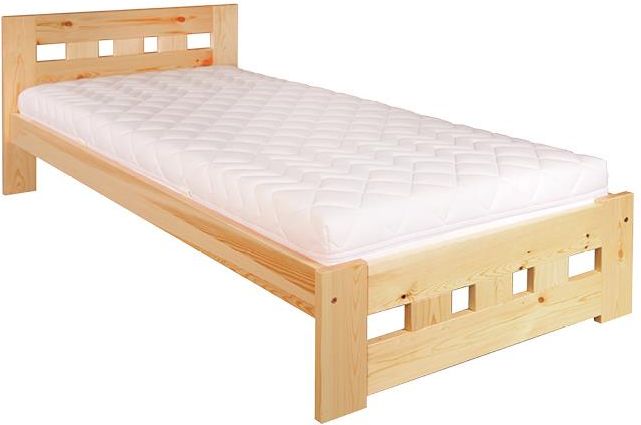 DREWMAX – Z PASJI DO MEBLI DREWNIANYCH LK145 łóżko S90 D200 sosna naturalny Łóżko sosnowe LK145 Łóżko sosnowe to propozycja marki Drewmax, która przypadnie do gustu, którzy stawiają na zastosowanie naturalnych materiałów w swoich wnętrzach. Drewniane meble do sypialni od polskiego producenta to doskonały przykład połączenia neutralnej i przytulnej estetyki z licznymi walorami praktyczno-użytkowymi. Prezentowane tutaj łóżko drewniane to rozwiązanie skierowane w szczególności w stronę pokoju dziecięcego i młodzieżowego oraz obiektów o charakterze komercyjno-usługowym, do jakich należą m.in. pensjonaty, apartamenty i hotele. Drewniane łóżko pojedyncze posiada stonowaną kolorystykę i nieskomplikowaną w formie budowę, która zapewnia we wnętrzach szerokie spektrum możliwości aranżacyjnych. To drewniane łózko z zagłówkiem będzie idealnym wyborem do małych pomieszczeń, w których priorytetową rolę odgrywają komfort i wygoda użytkownika. Łóżko drewniane sosnowe nie jest sprzedawane w komplecie ze stelażem i materacem - należy je dokupić oddzielnie. Meble produkowane w Polsce. Wysyłane w paczkach do samodzielnego montażu.