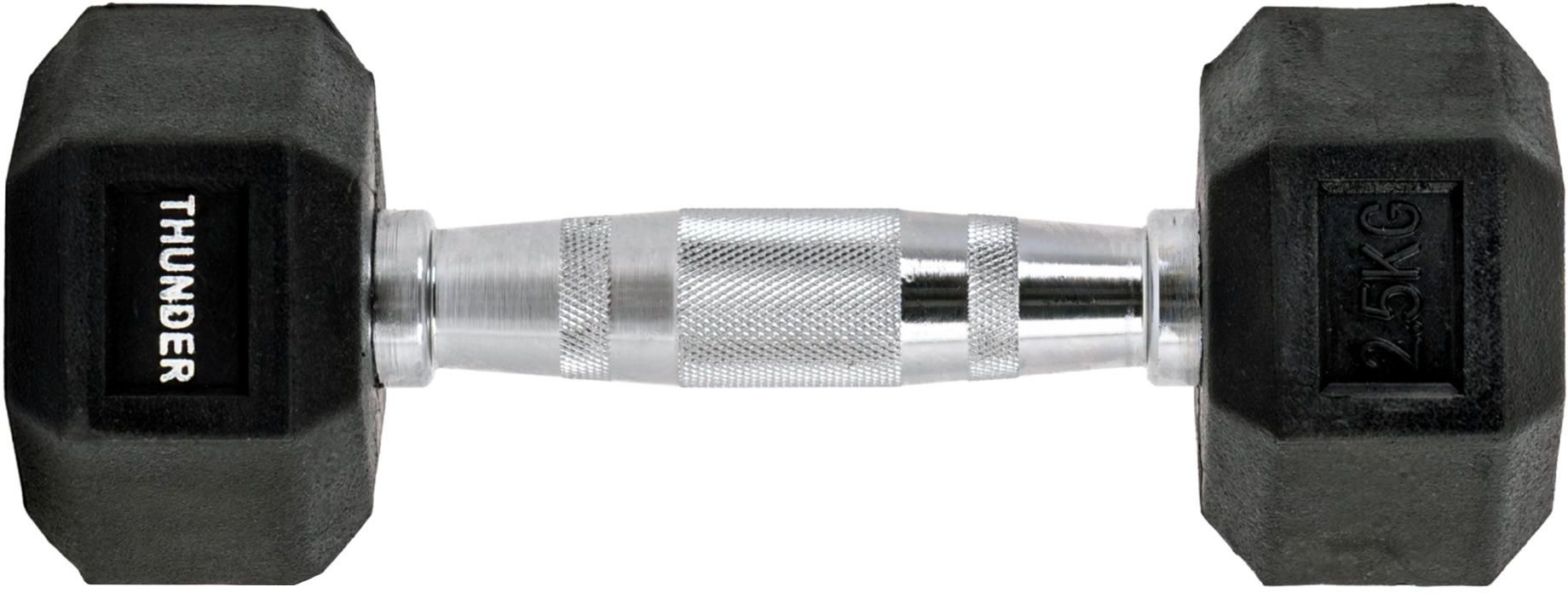Hantle hexagonalne HEXAGONAL-DUMBBELLS-2,5KG marki ⚡THUNDER®️⚡-profesjonalna hantla do ćwiczeń ✅ Parametry hantli hexagonalnej: ➡️ Waga: 2,5 kg ➡️ Wymiary [dł. x wys.]: 23,8 x 7,7 cm ➡️ Długość części chwytnej: 12,5 cm ➡️ Średnica części chwytnej: 3,5 cm ✅ Zalety hantli hexagonalnej: ➡️ Wszechstronność – Urozmaicają trening, odpowiednie do przysiadów, wykroków, martwego ciągu oraz ćwiczeń na klatkę piersiową i plecy. ➡️ Bezpieczeństwo i komfort – Gumowe pokrycie chroni podłogę, zwiększa wygodę i tłumi hałas. ➡️ Odporność na zużycie – Wytrzymałe materiały gwarantują trwałość i ochronę przed uszkodzeniami. Hantle hexagonalne występują w różnych wagach, co pozwala na ich dobór do indywidualnych potrzeb treningowych. Idealne na siłownię i do domu. Cena dotyczy jednej sztuki produktu❗ ✅ Solidne wykonanie: Hantle hexagonalne wyróżniają się odpornością na toczenie, co zwiększa bezpieczeństwo podczas treningu i chroni podłoże przed uszkodzeniami. ➡️ Wykonane ze stali powleczonej gumą – gwarancja wytrzymałości i ochrony przed uszkodzeniami. ➡️ Ergonomiczny ryflowany uchwyt – zapewnia pewny chwyt i wygodę podczas ćwiczeń. ➡️ Oznaczenia wagi – umożliwiają szybką identyfikację i wygodę podczas treningu.