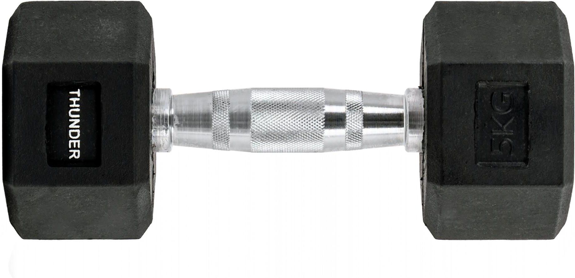 Hantle hexagonalne HEXAGONAL-DUMBBELLS-5KG marki ⚡THUNDER®️⚡- profesjonalna hantla do ćwiczeń ✅ Parametry hantli hexagonalnej: ➡️ Waga: 5 kg ➡️ Wymiary [dł. x wys.]: 26 x 8,9 cm ➡️ Długość części chwytnej: 12,5 cm ➡️ Średnica części chwytnej: 3,5 cm ✅ Zalety hantli hexagonalnej: ➡️ Wszechstronność – Urozmaicają trening, odpowiednie do przysiadów, wykroków, martwego ciągu oraz ćwiczeń na klatkę piersiową i plecy. ➡️ Bezpieczeństwo i komfort – Gumowe pokrycie chroni podłogę, zwiększa wygodę i tłumi hałas. ➡️ Odporność na zużycie – Wytrzymałe materiały gwarantują trwałość i ochronę przed uszkodzeniami. Hantle hexagonalne występują w różnych wagach, co pozwala na ich dobór do indywidualnych potrzeb treningowych. Idealne na siłownię i do domu. Cena dotyczy jednej sztuki produktu❗ ✅ Solidne wykonanie: Hantle hexagonalne wyróżniają się odpornością na toczenie, co zwiększa bezpieczeństwo podczas treningu i chroni podłoże przed uszkodzeniami. ➡️ Wykonane ze stali powleczonej gumą – gwarancja wytrzymałości i ochrony przed uszkodzeniami. ➡️ Ergonomiczny ryflowany uchwyt – zapewnia pewny chwyt i wygodę podczas ćwiczeń. ➡️ Oznaczenia wagi – umożliwiają szybką identyfikację i wygodę podczas treningu.