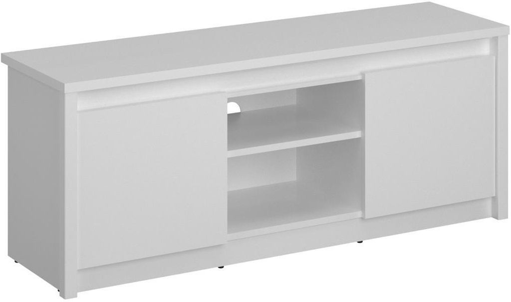 Szafka RTV dwurzwiowa z półkami do salonu Stolik pod telewizor Biały ERDEN Szafka z kolekcji ERDEN Szafka RTV 2D125 Erden dzięki klasycznej budowie, białej kolorystyce w matowym wykończeniu, oraz funkcjonalności sprawdzi się w każdym salonie. Ten niewielki, a niezwykle przydatny mebel, oprócz miejsca na telewizor, posiada również dwie zamykane szafki oraz półki otwarte, w których właściciel może umieścić dekoder, konsolę do gier czy zestaw głośników do kina domowego. W zamykanych szafkach przechowamy akcesoria elektroniczne, kable, różne gadżety oraz kolekcję filmów lub albumów muzycznych. System bezuchwytowy nadaje meblowi niepowtarzalny minimalistyczny wygląd i jednocześnie jest bardzo wygodny w użytkowaniu. Szafka sprawdzi się w połączeniu z innymi meblami z kolekcji Erden. Bezuchwytowy system otwierania System ERDEN składa się z 17 segmentów Wymiary Szerokość: 125,4 cm Głębokość: 36,2 cm Wysokość: 50 cm Waga towaru z opakowaniem: 32,7 kg Wnętrze Dwudrzwiowy mebel wyposażony jest w dwie otwarte i dwie zamykane wnęki. Wykończenie Mebel został precyzyjnie wykonany z solidnej płyty wiórowej pokrytej białym laminatem i zabezpieczony obrzeżem PCV. Zastosowany materiał jest łatwy w pielęgnacji i utrzymaniu czystości, a także odporny na zarysowania i uszkodzenia, co gwarantuje długotrwałe użytkowanie produktu. Szczegóły produktu Nazwa systemu: ERDEN Ilość drzwi: 2 Ilość półek: 1 Ilość wnęk otwartych: 2 Ilość wnęk zamkniętych: 2 Uchwyt: bezuchwytowy Dopuszczalne obciążenie półek: 5 kg Montaż: mebel w paczkach do samodzielnego montażu Wykonanie Korpus: płyta meblowa laminowana, obrzeże PCV Blat: płyta meblowa laminowana, obrzeże PCV Front: płyta meblowa laminowana, obrzeże PCV Kolorystyka Korpus: biały Blat: biały Front: biały Galeria zdjęć
