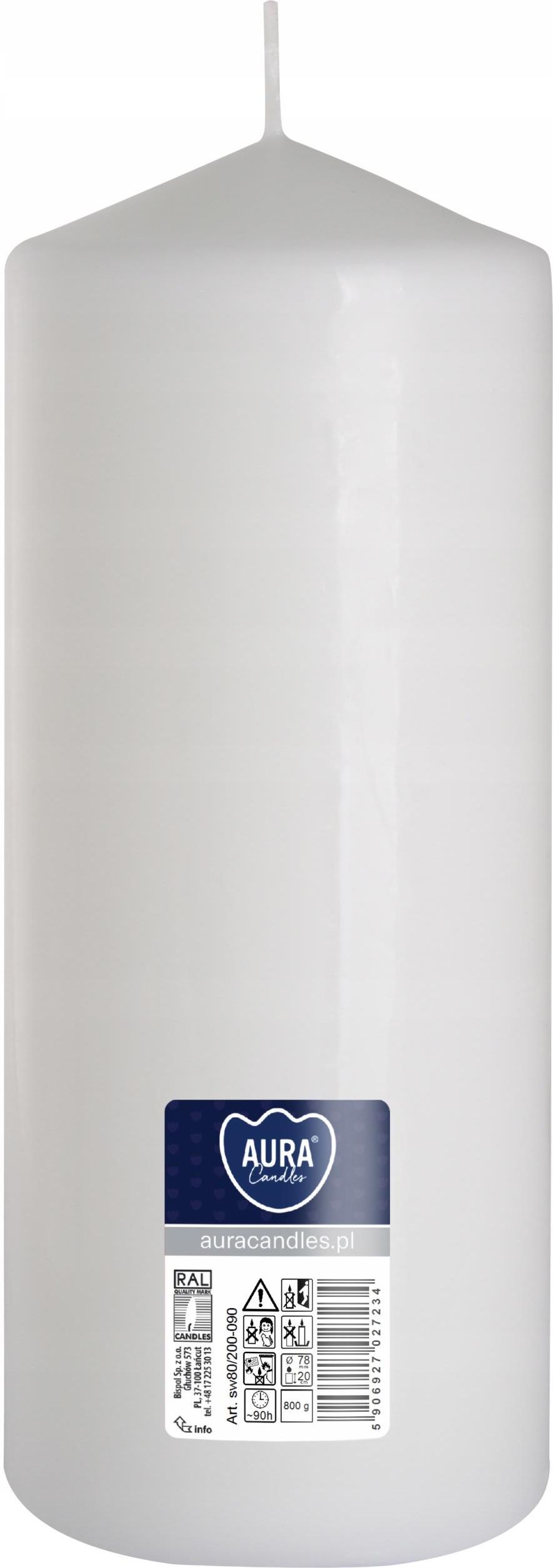 Uniwersalna biała świeca Biała świeca doskonale nadaje się do dekoracji kościoła podczas ceremonii ślubnej, dostojnie wygląda zarówno ustawiona pojedynczo, jak i element stroika. Elegancka i ponadczasowa świeca o średnicy 8 cm i wysokości 20 cm. Bardzo okazała dzięki sporemu gabarytowi, sprawdzi …