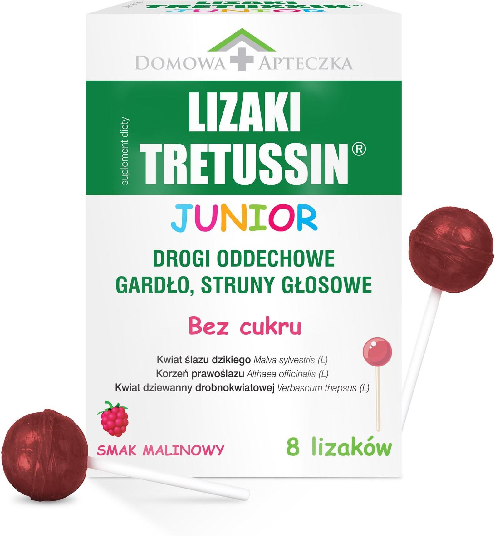 Domowa Apteczka Tretussin Junior Lizaki Smak Malinowy 8 szt. Augustów
