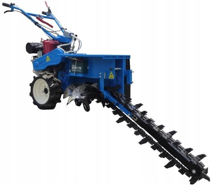 MASTERCUT SRLT-70 KOPARKA ŁAŃCUCHOWA NAPĘDEM NAPĘD KOŁA OGRODOWA OGRODNICZA MASTERCUT 5900652072682 Koparka łańcuchowa z napędem na koła SRLT-70 Mastercut przeznaczona do wykonania wąskiego wykopu, można użyć przy instalacji wodnej, gazowej, elektrycznej o ile pozwalają na to techniczne wymogi. Szerokość rowu po wykonaniu przekopu to 12 cm MASTERCUT SRLT-70 KOPARKA ŁAŃCUCHOWA Z NAPĘDEM NAPĘD NA KOŁA OGRODOWA OGRODNICZA SPALINOWA MINIKOPARKA DO UKŁADANIA RUR, PRZEWODÓW, KABLI itp. DIESEL 15KM / 70cm Koparka przeznaczona do wykonania wąskiego wykopu, który można użyć przy instalacji wodnej, gazowej, elektrycznej o ile pozwalają na to techniczne wymogi. Szerokość rowu po wykonaniu przekopu koparką łańcuchową z własnym napędem to około 12 cm, a jego głębokość to maksymalnie 70cm. Zastosowanie koparki oszczędza czas wykonania pracy oraz niweluje konieczność angażowania ciężkiego sprzętu budowlanego, a niewielkie rozmiary pozwalają na stosunkowo łatwy transport oraz łatwość manewrowania w miejscach gdzie większe maszyny nie mogą wjechać. Koparka łańcuchowa z napędem to bardzo silna maszyna do pracy w zbitej glebie trudnej do przekopania ręcznie. Z łatwością poradzi sobie z ciężką ziemią Koparka łańcuchowa posiada napęd na koła, dzięki czemu wykonanie rowu jest mniej męczące w porównaniu do urządzeń bez napędu na koła oraz oczywiście do pracy ręcznej. Przy pracy ręcznej dodatkowo często powstaje niejednorodny i nie równy wykop, czego nie można powiedzieć o efektach pracy koparką łańcuchową. Jednostką napędową jest silnik Diesla o dużej pojemności z możliwością uruchomienia zarówno za pomocą szarpaka ręcznego jak i rozrusznika elektrycznego. Prowadnica łańcucha opuszczana oraz podnoszona jest za pomocą siłownika elektrycznego. Daje nam to płynną, wielostopniową oraz łatwą regulację głębokości pracy za pomocą jednego przełącznika. Napęd na koła przenoszony jest za pomocą wolnoobrotowej przekładni o dużym momencie obrotowym. Prędkość można regulować za pomocą dźwigni umieszczonych w łatwo dostępnym miejscu. Zmiana prędkości jazdy daje nam możliwość dobrania odpowiedniego tempa to wymagań terenu. Zarówno w przód jak i w tył mamy dostępne dwa przełożenia, ze względu na konstrukcję w trakcie pracy używamy przełożeń wstecznych. Dla ułatwienia skrzynia napędowa została wyposażona w możliwość rozłączania napędu z jednego koła, co ułatwia manewrowanie oraz korektę kopania w trakcie pracy. Odbywa się to przez naciśnięcie prawej lub lewej manetki, które znajdują się przy uchwycie. Specyfikacja koparka łańcuchowa z napędem Jednostka napędowa silnik Diesla Pojemność silnika 499cm3 Obroty maksymalne silnika 1800obr/min Moc silnika 15KM Rozrusznik ręczny + elektryczny Metalowe zęby kopiące ze spiekiem węglików Szerokość wykopu ok. 12cm Głębokość wykopu 70cm Dwie prędkości pracy/napędu Rozłączanie łańcucha Elektryczne opuszczanie i podnoszenie łańcucha Mechanizm rozłączanie napędu wybranego koła Waga netto 360kg Specyfikacja techniczna:Podatek VAT: 23% Waga: 360kg Kod EAN: 2019061308121 Kod towaru: SRLT-KGJ Identyfikator: 61788 Symbol: SRLT-KGJ