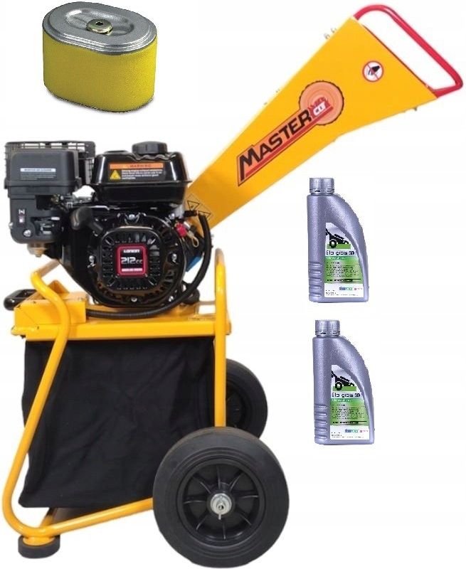 Rozdrabniacz do gałęzi Mastercut AU-GS50 Specyfikacja silnika Pojemność silnika 212cm3 Moc maksymalna 6,0KM (4,4kW) Rozrusznik ręczny Pojemność misy olejowej 0,6L Pojemność zbiornika paliwa 3,6L Silnik wyposażony w czujnik oleju Filtr powietrza suchy papierowy z filtrem wstępnym gąbkowym Specyfikacja urządzenia Maksymalna średnica gałęzi 50mm (świeżo ścięte) Głowica robocza – bęben z nożami Ilość noży 3szt – 2 x noże na bębnie + 1 x oporowy Noże wykonane ze stali CR12 Bezpośrednie przeniesienie napędu z silnika na głowicę rozdrabniającą Pojemnik na zrębki o pojemności 64L (40x39x40cm) Wysuwany pojemnik na zrębki Kosz na rozdrobniony materiał wykonany z grubego płótna Koła transportowe pełne 25,4cm (10”) Rozmiary po złożeniu 100x65x110cm (dł/szer/wys) Waga netto 51,5kg Urządzenie dostarczane bez oleju w silniku. Rozdrabniacz pozwala na przetworzenie gałęzi o średnicy do 50mm na drobniejsze kawałki, co ułatwia ich transport, składowanie lub kompostowanie. Dzięki temu można pozbyć się odpadów organicznych w sposób ekologiczny i praktyczny. Dodatkowo, rozdrobnione gałęzie mogą być użyte jako ściółka, która chroni glebę przed wysychaniem i chwastami. Rębak spalinowy Mastercut AU-GS50 to kompaktowe urządzenie przeznaczone do zmniejszania objętości materiału zielonego takiego jak gałęzie i konary. Kompaktowa budowa i relatywnie niewielkie gabaryty w połączeniu z mocnym i trwałym silnikiem sprawiają, że ta maszyna to sprawny pomocnik w ogrodzie który nie sprawi kłopotów z przechowywaniem. Urządzenie wyposażone w wygodny lej podawczy, który precyzyjnie dozuje materiał na głowicę roboczą, a zrębki trafiają do solidnego pojemnika. Kosz na zrębki wykonany z solidnego materiału pozwala na zachowanie w czystości stanowiska do rozdrabniania.