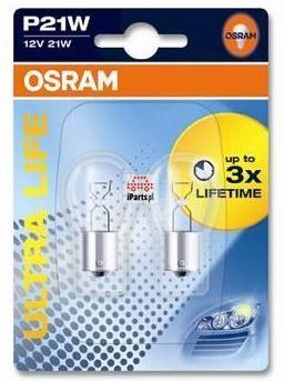 Żarówki P21W OSRAM Ultra Life BA15S 12V 21W Trwałe światło o nawet czterokrotnie dłuższej trwałości Dzięki ULTRA LIFE, możesz poprawić trwałość żarówek pomocniczych w Twoim samochodzie. Żarówki zapewniają długą eksploatację – aż do czterech razy dłuższą w porównaniu ze standardowymi żarówkami – i …