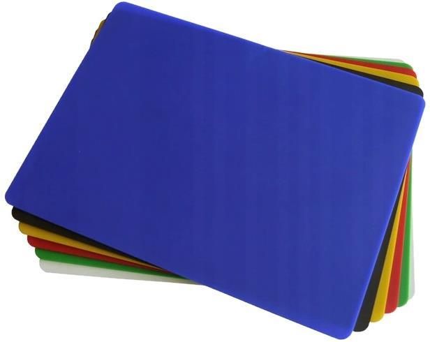 Profesjonalne maty do krojenia zgodne z normami HACCP w różnych kolorach. Wyprodukowane w POLSCE. Produkty spełniają wymagania higieniczne dzięki czemu eliminują ryzyko bezpośredniego ryzyka związanego z zagrożeniem zdrowia bezpośrednio w miejscu ich powstania.maty przystosowane są do przyrządzania na nich różnorodnych produktów w zależności od koloru. Polska produkcja Spełniają wymogi higieniczne systemu HACCP Dwustronna powierzchnia Elastyczna forma Specjalna kolorystyka dostosowana do systemu oznaczania wg. HACCP Bezpieczeństwo dla zdrowia podczas użytkowania Eliminują zagrożenia związane ze zmieszaniem produktów które powinny być przygotowane osobno np. mięso Do użytku prywatnego lub w lokalach gastronomicznych BPA FREE Nie tępią noży Materiał: Polipropylen, Elastomer W zestwie znajdują się maty z przeznaczeniem do: - niebieska: surowe ryby i owoce morza - czerwona: mięs - żółta: surowy drób - zielona: warzywa i owoce - biała - nabiał i pieczywo - brązowa: gotowane mięso i wędliny Mata do krojenia to element wyposażenia w kuchni skutecznie ułatwiający w niej pracę. Elastyczna forma dopasuje się do Twojego blatu. Mata kuchenna na blat ochroni go przed zarysowaniami zwiększając tym samym komfort pracy. Silikonowa podkładka kuchenna pozostaje na swoim miejscu i nie ślizga się podczas użytkowania. - biała - nabiał i pieczywo Produkt naszej Polskiej produkcji Wymiary produktu: Długość: 33 cm, Szerokość: 24 cm, Grubość: 0,3 cm, Profesjonalna mata do krojenia zgodna z normami HACCP w kolorze brązowym. Wyprodukowana w POLSCE. Produkt spełnia wymagania higieniczne dzięki czemu eliminuje ryzyko bezpośredniego ryzyka związanego z zagrożeniem zdrowia bezpośrednio w miejscu ich powstania. Nasza mata przystosowana jest do przyrządzania na niej gotowanego mięsa i wędlin. - brązowa: gotowane mięso i wędliny Profesjonalna mata do krojenia zgodna z normami HACCP w kolorze czerwonym. Wyprodukowana w POLSCE. Produkt spełnia wymagania higieniczne dzięki czemu eliminuje ryzyko bezpośredniego ryzyka związanego z zagrożeniem zdrowia bezpośrednio w miejscu ich powstania. Nasza mata przystosowana jest do przyrządzania na niej różnorodnych mięs - czerwona: mięs Mata do krojenia to element wyposażenia w kuchni skutecznie ułatwiający w niej pracę. Elastyczna forma dopasuje się do Twojego blatu. Mata kuchenna na blat ochroni go przed zarysowaniami zwiększając tym samym komfort pracy. Silikonowa podkładka kuchenna pozostaje na swoim miejscu i nie ślizga się podczas użytkowania. - żółta: surowy drób Profesjonalna mata do krojenia zgodna z normami HACCP w kolorze niebieskim. Wyprodukowana w POLSCE. Produkt spełnia wymagania higieniczne dzięki czemu eliminuje ryzyko bezpośredniego ryzyka związanego z zagrożeniem zdrowia bezpośrednio w miejscu ich powstania. Nasza mata przystosowana jest do przyrządzania na niej surowych ryb oraz owoców morza. Profesjonalna mata do krojenia zgodna z normami HACCP w kolorze zielonym. Wyprodukowana w POLSCE. Produkt spełnia wymagania higieniczne dzięki czemu eliminuje ryzyko bezpośredniego ryzyka związanego z zagrożeniem zdrowia bezpośrednio w miejscu ich powstania. Nasza mata przystosowana jest do przyrządzania na niej owoców i warzyw