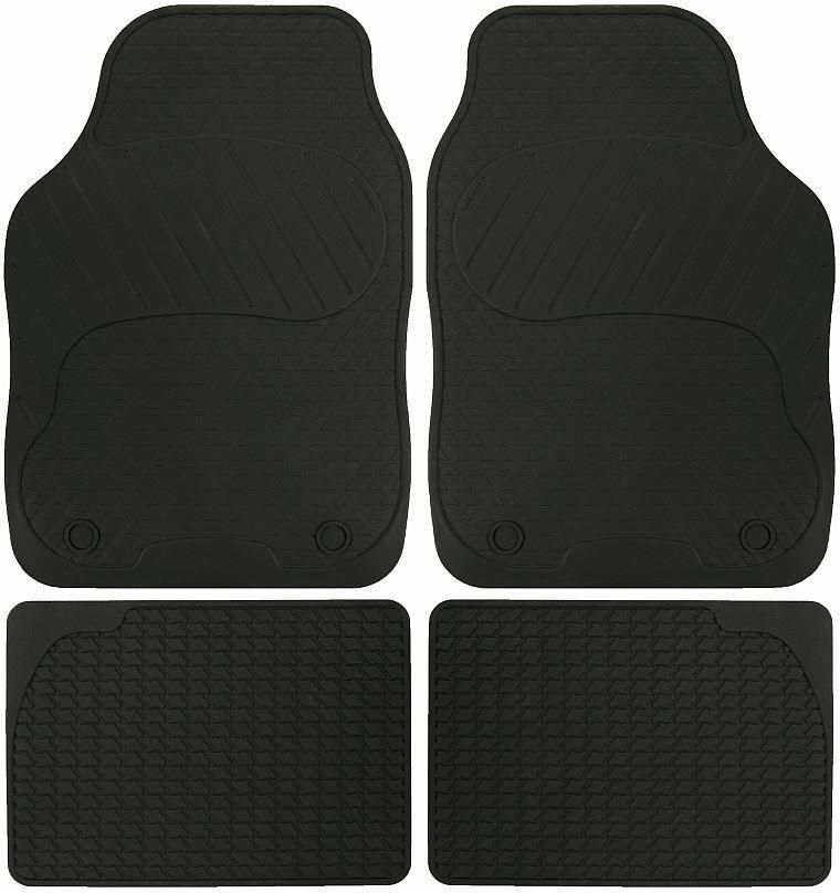 Zestaw czterech dywaników do samochodu. Chronią podłoże przed wilgocią. Dywaniki są wykonane z kauczuku oraz gumy wysokiej jakości i nie wydzielają nieprzyjemnego zapachu. Każdy z dywaników posiada podniesiony rant blokującym wodę i zanieczyszczenia. Każdy z dywaników posiada antypoślizgowy wzór zabezpieczający przed przesuwaniem się wycieraczki