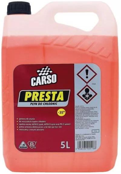 Carso Presta 5L Płyn chłodniczy Carso Presta 5L od K2 to produkt, który odgrywa kluczową rolę w prawidłowym funkcjonowaniu każdego pojazdu. Dzięki innowacyjnej formule oraz wysokiej jakości składnikom, Carso Presta zapewnia optymalną wydajność silnika oraz jego długowieczność, co czyni go istotnym elementem w dbaniu o efektywność działania silnika. Rodzaje i zastosowanie płynów Płyny chłodnicze, takie jak Carso Presta, są niezbędne dla zapewnienia właściwej temperatury w silniku. Ich podstawowe zadanie to ochrona przed przegrzaniem latem oraz zamarzaniem zimą. Poniższa lista przedstawia różne zastosowania płynów chłodniczych, takich jak ten produkt: silniki benzynowe, doskonała ochrona przed przegrzaniem, silniki diesla, skuteczna ochrona w trudnych warunkach, samochody osobowe, zastosowanie w różnych typach układów chłodzenia, pojazdy ciężarowe, wykorzystanie w wymagających warunkach eksploatacji, systemy chłodzenia, kompatybilność z różnymi rodzajami chłodnic. Pojemność opakowania Carso Presta dostępny jest w wygodnym pięciolitrowym opakowaniu, co czyni go praktycznym wyborem dla osób, które wymagają większej ilości płynu do konserwacji swojego pojazdu. Wybór odpowiedniej pojemności jest kluczowy, aby zapewnić właściwe uzupełnienie układu chłodzenia, a także dostosować ilość płynu do specyfikacji i potrzeb konkretnego samochodu. Właściwości i specyfikacja Płyn chłodniczy Carso Presta wyróżnia się szeregiem istotnych właściwości, które wpływają na jego efektywność i bezpieczeństwo użytkowania. Dzięki specjalnie opracowanej recepturze, ten produkt zapewnia ochronę silnika w ekstremalnych warunkach – od -35°C do +150°C. Poniżej przedstawiamy kluczowe właściwości płynu: wysoka lepkość, zapewniająca skuteczną ochronę, zawartość inhibitorów korozji, chroniąca układ chłodzenia, środki antypienne, eliminujące ryzyko powstawania piany, możliwość mieszania z innymi płynami na bazie glikolu etylowego, co zwiększa jego uniwersalność, brak azotynów, amin i fosforanów, co czyni go bardziej przyjaznym dla środowiska. Płyn spełnia najnowsze normy branżowe, co potwierdza jego jakość i bezpieczeństwo. Zalecane terminy wymiany Aby utrzymać silnik w doskonałej kondycji, ważne jest przestrzeganie zalecanych terminów wymiany płynów. W przypadku omawianego produktu, zaleca się wymianę w następujących odstępach czasowych: co 60 000 km, regularna wymiana, szczególnie przy intensywnej eksploatacji, co 3 lata, standardowy termin wymiany, który warto uwzględnić, w przypadku intensywnego użytkowania, warto kontrolować stan płynu co 20 000 km, wymiana po długotrwałym przechowywaniu pojazdu, aby zapewnić optymalną wydajność. Konkretne terminy powinny być uzależnione od wskazówek zawartych w instrukcji obsługi pojazdu. Regularne kontrole i wymiany płynów pozwalają na zapobieganie ewentualnym awariom oraz utrzymanie optymalnej wydajności silnika. Sposób aplikacji Prawidłowe stosowanie płynu chłodniczego Carso Presta jest kluczowe dla zapewnienia jego efektywności. Oto kroki, które należy wykonać, aby prawidłowo uzupełnić układ chłodzenia: Usuń zużyty płyn chłodniczy i przepłucz układ wodą lub specjalnym środkiem do płukania chłodnic. Napełnij układ gotowym płynem Carso Presta. Uruchom silnik i odpowietrz układ chłodzenia. Po ochłodzeniu dopełnij płynem do poziomu między MIN a MAX na zbiorniczku wyrównawczym. Dbałość o prawidłową aplikację płynu wpływa na jego skuteczność i wydajność w codziennym użytkowaniu. Bezpieczeństwo Podczas korzystania z płynu chłodniczego, należy przestrzegać pewnych zasad bezpieczeństwa. W szczególności warto unikać kontaktu z skórą oraz przechowywać produkt w odpowiednich warunkach, w temperaturze od 5°C do 25°C. Odpowiednie przechowywanie i stosowanie produktu są kluczowe dla ochrony użytkowników i środowiska. Kompatybilność Płyn chłodniczy Carso Presta jest kompatybilny z innymi produktami na bazie glikolu etylowego, co czyni go uniwersalnym rozwiązaniem w zakresie uzupełniania płynów chłodniczych. Możliwość mieszania z innymi płynami na rynku sprawia, że użytkownicy nie muszą obawiać się o negatywne efekty spowodowane brakiem zgodności chemicznej. Dodatkowe zalety Oprócz podstawowych właściwości, płyn chłodniczy Carso Presta oferuje szereg dodatkowych korzyści, które przekładają się na długotrwałą ochronę silnika. Poniżej przedstawione są niektóre z nich: ochrona przed korozją, skuteczne zabezpieczenie układu chłodzenia, optymalna wydajność, dostosowanie do ekstremalnych warunków eksploatacji, wydłużony okres eksploatacji, ochrona do 6 lat lub 300 000 km. Płyn chłodniczy, taki jak Carso Presta, jest istotnym elementem w zapewnieniu sprawności oraz wydajności układu chłodzenia w każdym pojeździe.