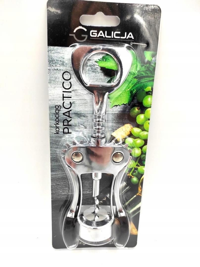 Korkociąg Practico wykonany jest z wysokiej jakości stali nierdzewnej oraz tworzywa sztucznego. Idealny do otwierania butelek wina oraz piwa. Produkt nie nadaje się do mycia w zmywarkach. Korkociąg zawiera ostre elementy. Należy zachować szczególną ostrożność podczas używania, aby zapobiec ewentualnym zranieniom. Przechowywać w miejscu niedostępnym dla dzieci. Wymiary: Długość: 19cm Szerokość: 6,2cm.