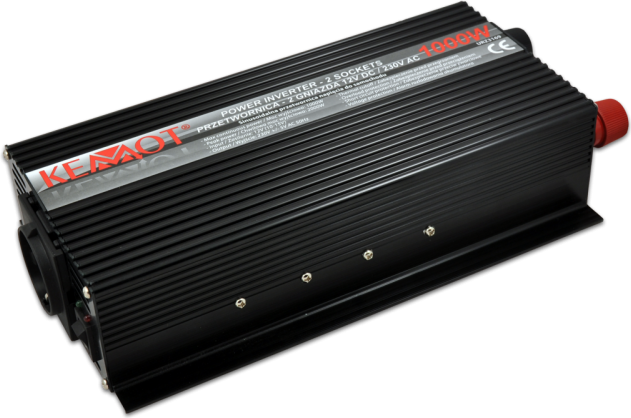 PRZETWORNICA 12V na 230V 1000W KEMOT GNIAZDO NIEMIECKIEPrzetwornica napięcia do samochodu 12 V DC/230 V AC Moc wyjściowa: 1000 W Chwilowa moc wyjściowa: 2000 W Zasilanie: 12 V (10-15 V) Wyjście: 230 V +/-5 V AC; 50 Hz Gniazdo typu niemieckiego Zabezpieczenia wewnętrzne: Alarm niskiego poziomu akumulatora (baterii) zabezpieczenie przed przegrzaniem, przeciążeniem, przeciwzwarciowe, przepięciowe W zestawie: Przewody połączeniowe z krokodylkami