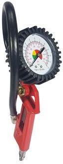 PISTOLET DO POMPOWANIA 0-12bar 360mmdługość węża: 360 mm skala manometru: 0 - 12 bar wyposażony w zawór spustowy gumowa obudowa manometru złącze: 1/4"