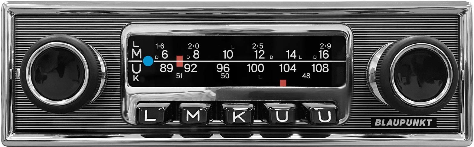 Blaupunkt Frankfurt Stereo MB Radio samochodowe Retro MP3 USB DAB Bluetooth Idealna symbioza nostalgicznego designu i nowoczesnej technologii: radio samochodowe FRANKFURT Stereo MB w stylu retro – wizualnie oryginał z lat 70., technicznie urządzenie najnowocześniejsze.Dzięki klasycznym wymiarom …