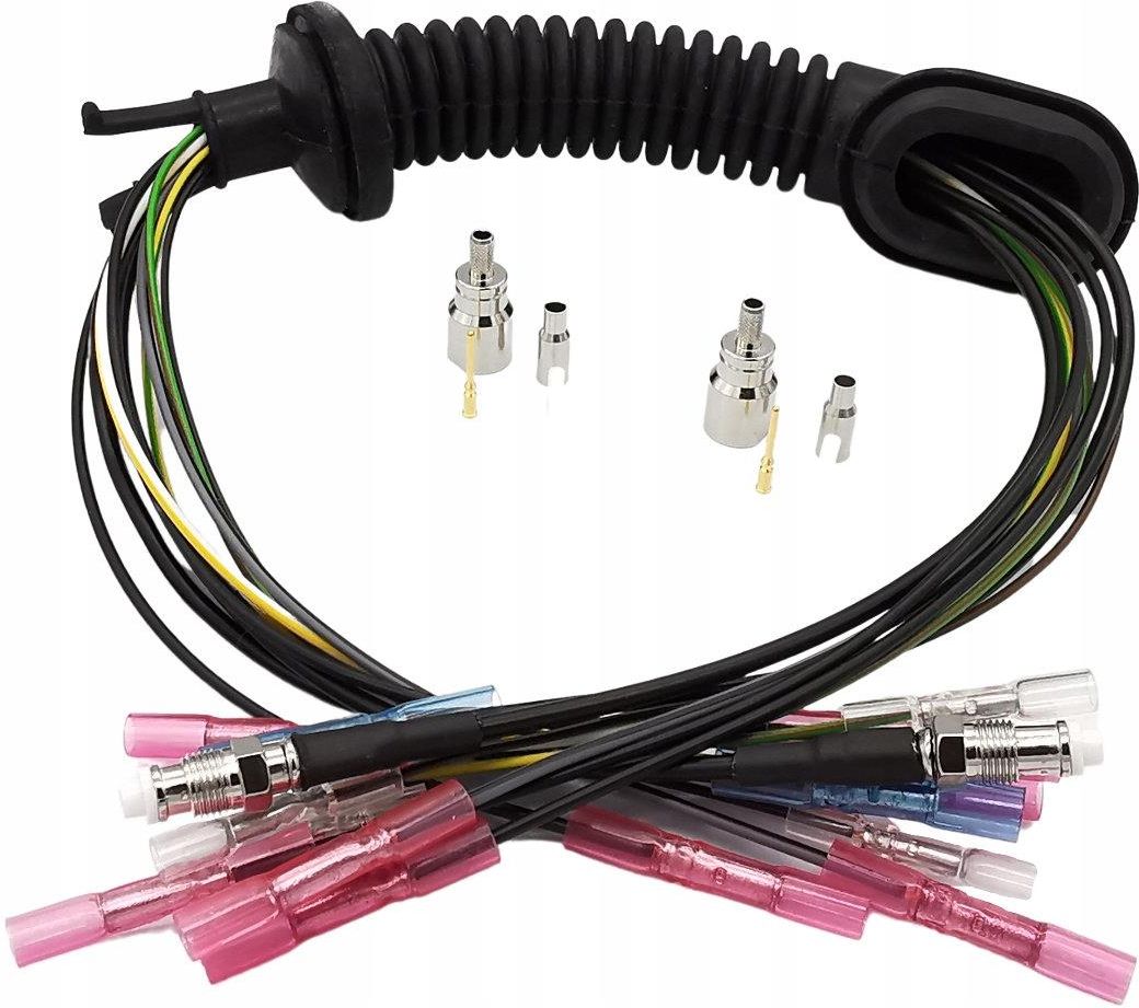 Nowy zestaw naprawczy kabli klapy bagażnika, wraz z gumową przelotką na prawą stronę do: Alfa Romeo Giulietta (940) 04.2010 - 12.2020 Specyfikacja zestawu: kable FLRY-B – przewód samochodowy niskiego napięcia (FL) o zredukowanej grubości izolacji (R), z polwinitu (Y), z żyłą asymetryczną (B), prod. Polska, Niemcy ilość kabli: 8 (0,5mm² - 2,5mm²) przewód antenowy zakończony złączami FME długość kabli: ok. 50cm zaciśnięte konektory rurkowe DSG CANUSA CRIMPSEAL II z koszulką termokurczliwą WYPRODUKOWANO W POLSCE